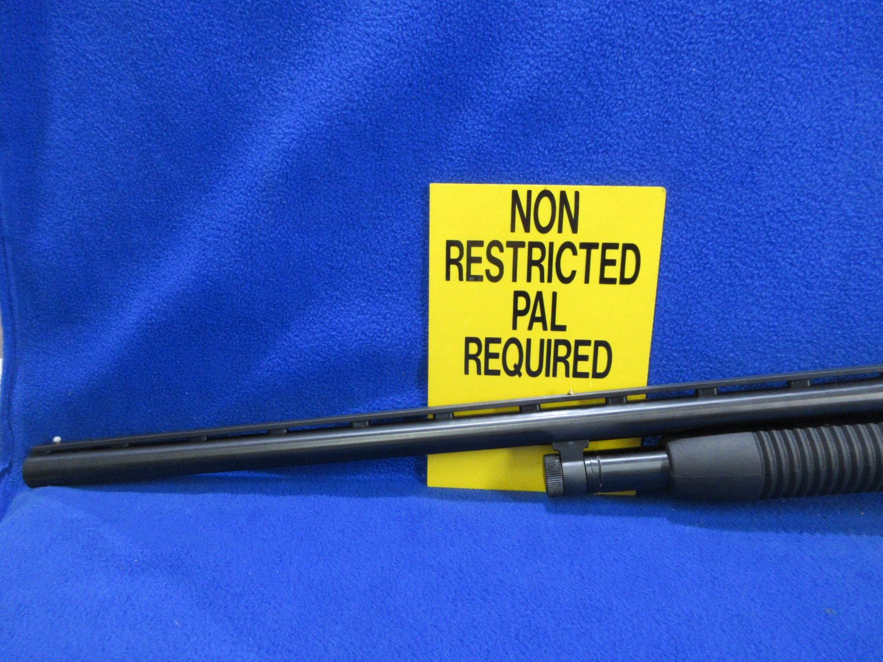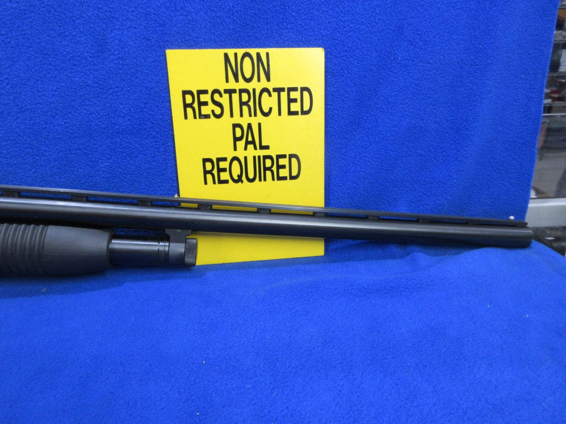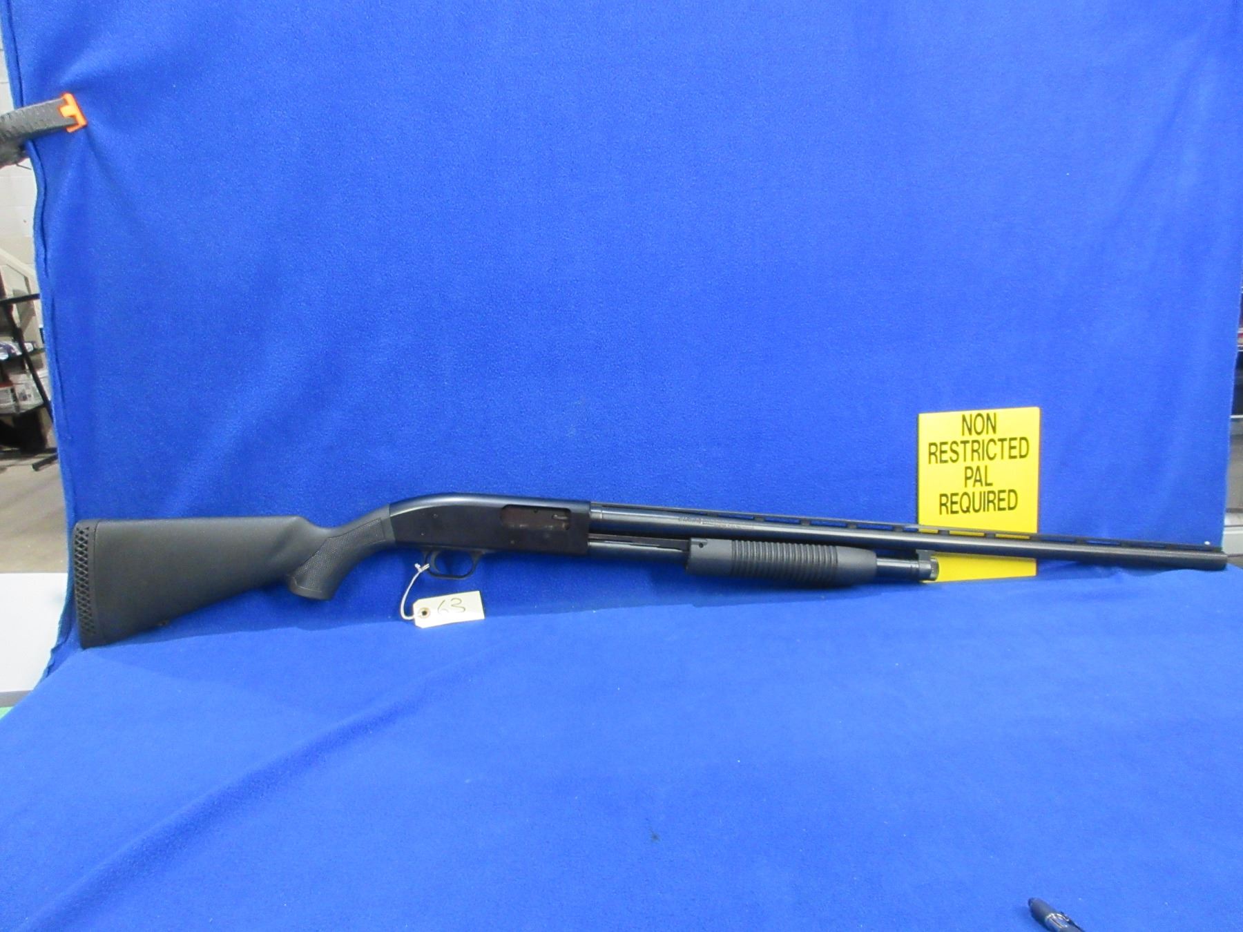 Non-Restricted - Mossberg Maverick 88 in 12 Ga. 2 3/4" / 3" - This is a pump action shotgun with tube magazine and removable Accu-Choke, action appears to be in good to very good working order. Vent rib barrel is 28", bore is good to very good, black finish is good to very good, has mid bead and bead front sight, synthetic stock is very good, synthetic forearm is very good, length of pull is 14", rubber recoil pad very good. Ser # MV0512216