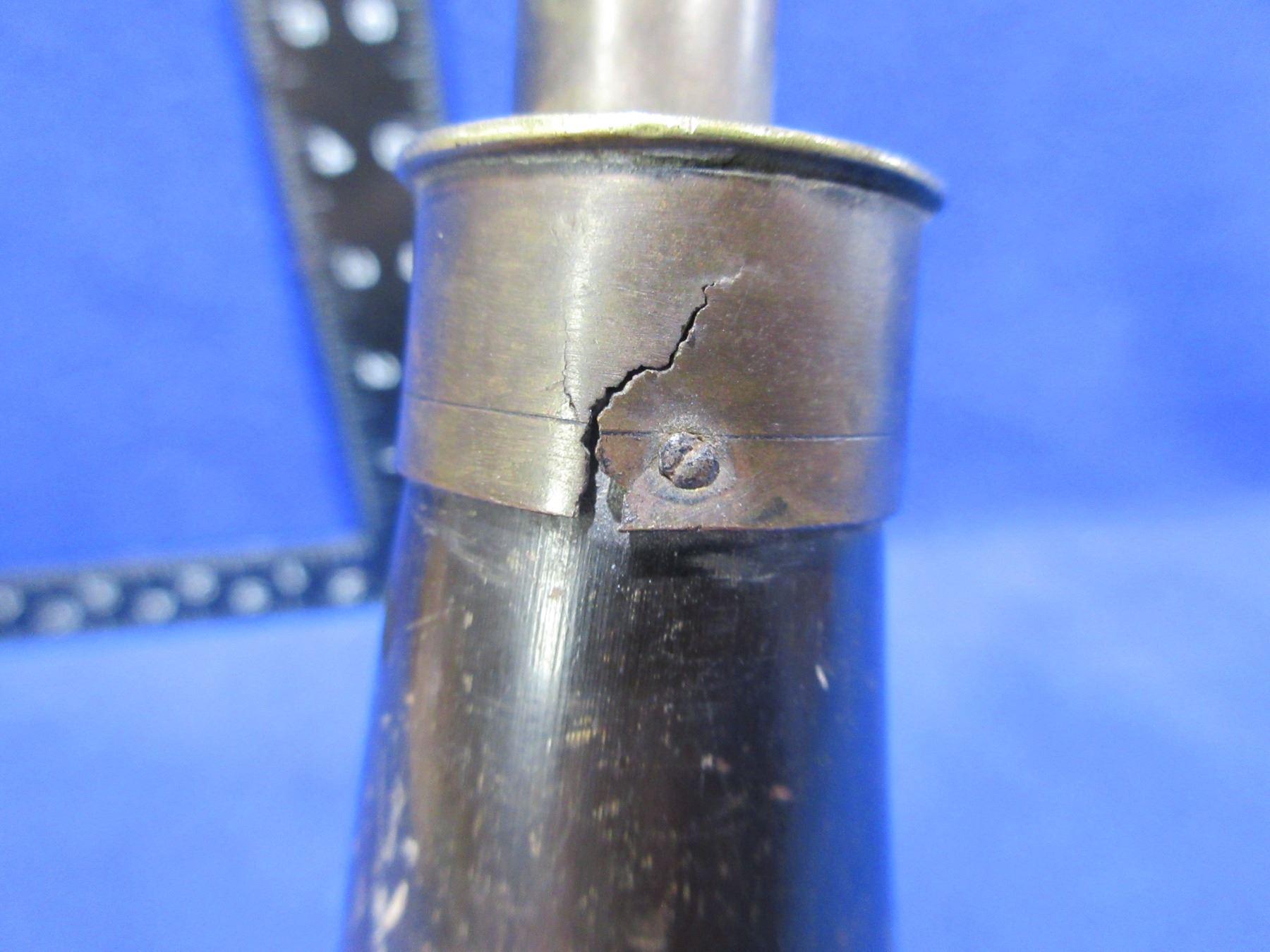 Vintage Powder Horn - Brass has a Crack Near the Top - Possibly 19th Century Scottish Flattened