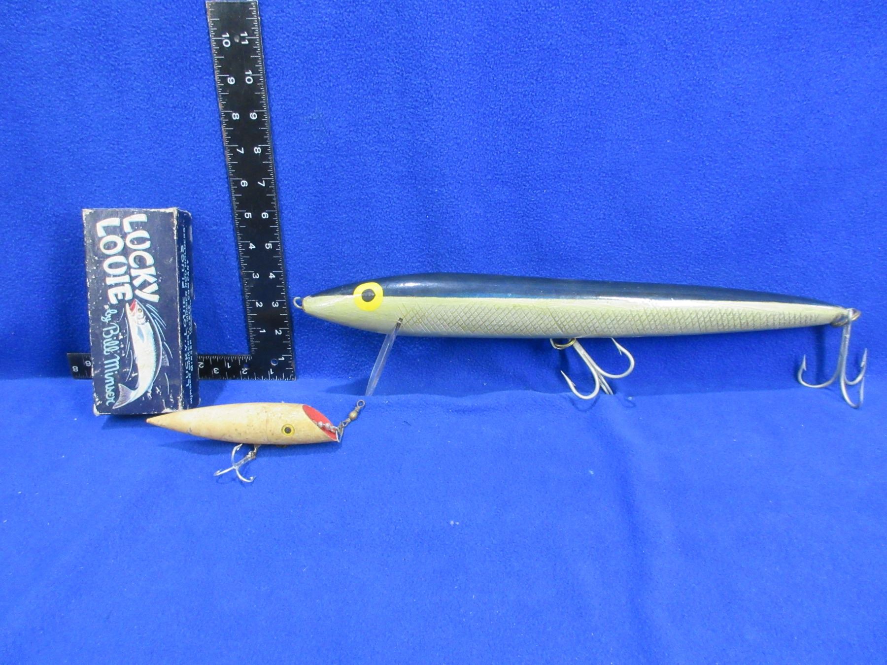 Lot 99 2 Vintage Fishing Lures - 5 1/2" Lucky Louie and Unknown 18"