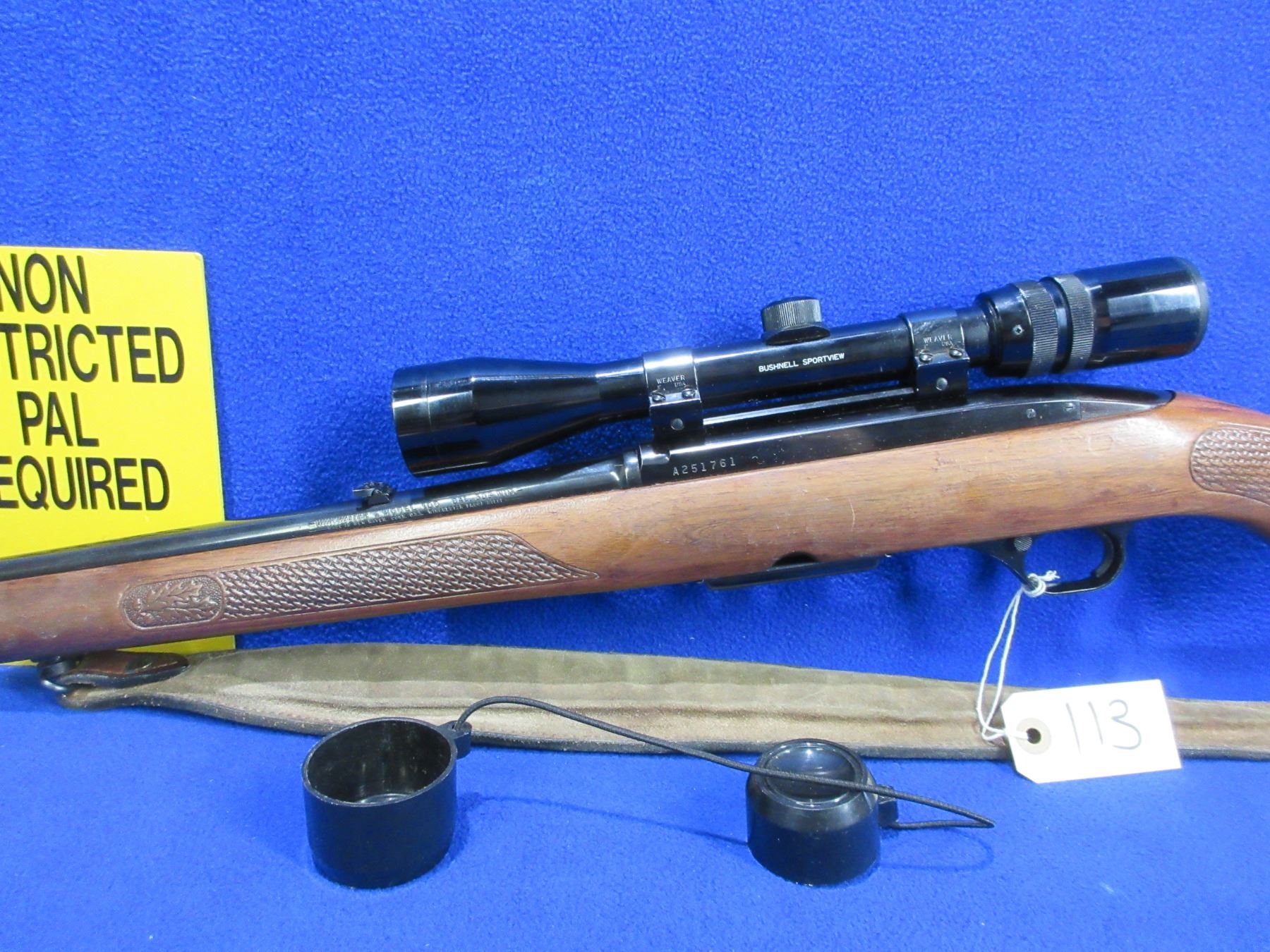 Non-Restricted - Winchester Model 100 in 308 Win - Made in 1972, this is a semi-auto rifle with removable magazine, action appears to be in good to very good working order. Barrel is 22", rifling is good to very good, bluing is good to very good, has both sights and has Weaver 1" rings and a Bushnell Sportview 3-9x40 scope - appears clear - duplex reticle (top turret cover dented), stock is good with usage marks, length of pull is 14", butt plate good, comes with lens covers, swivels and leather sling. Ser # A251761