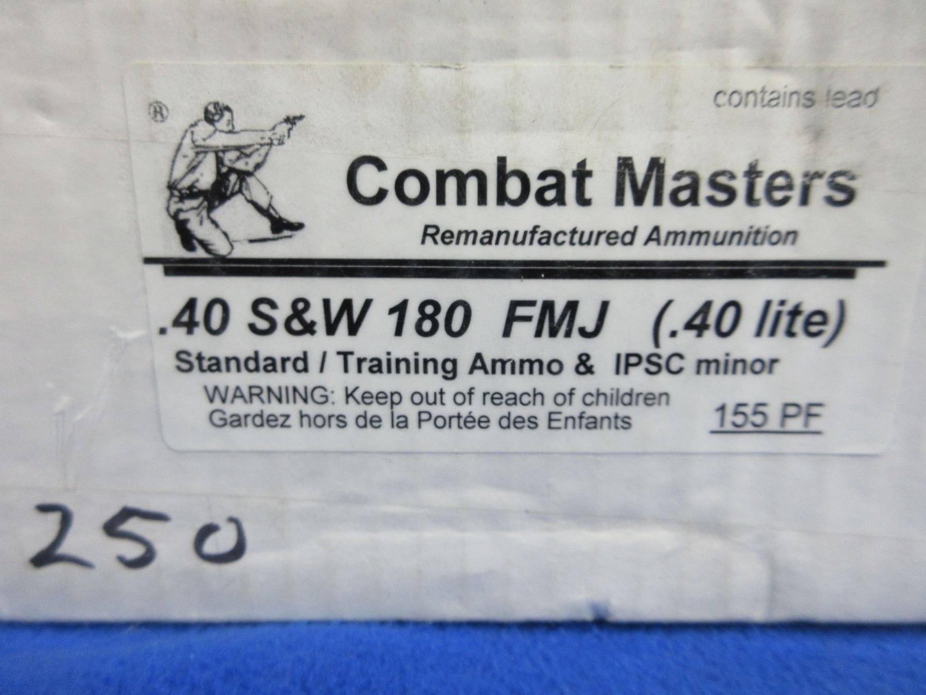 40 S&W 180gr FMJ Factory Reloads (Pick Up or Ship by UPS Only) by Combat Masters - Box of 250