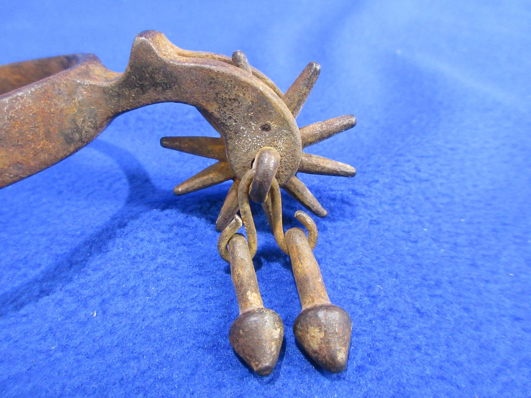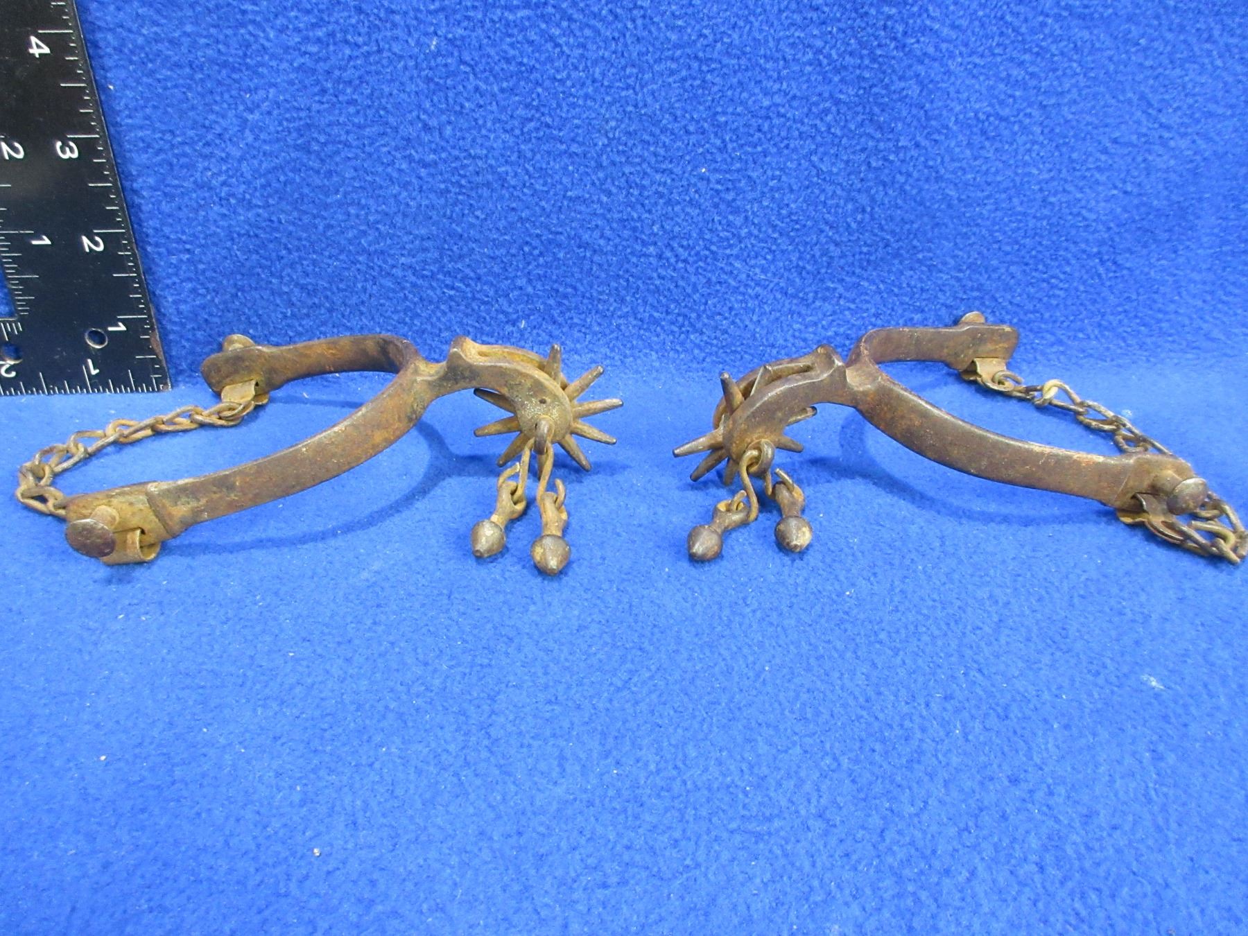 Lot 128 Vintage Pair of Rare Spurs with Heel Chain & Jingle Bobs