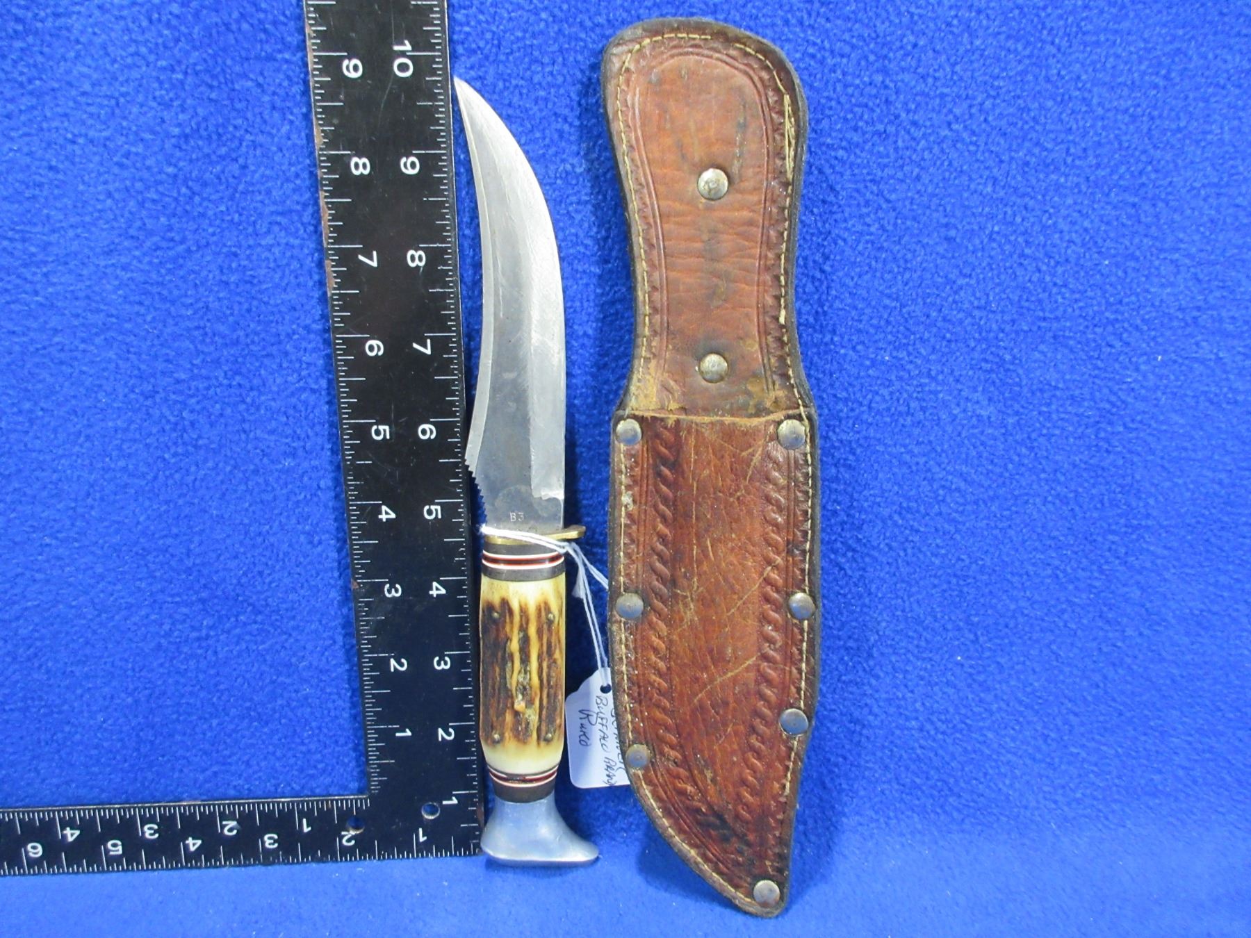 Buffalo Brand Original Buffalo Skinner Fixed Blade Knife with Stag Handle and Leather Sheath - Ruko Solingen - 5" Blade, 9 1/2" Total Length