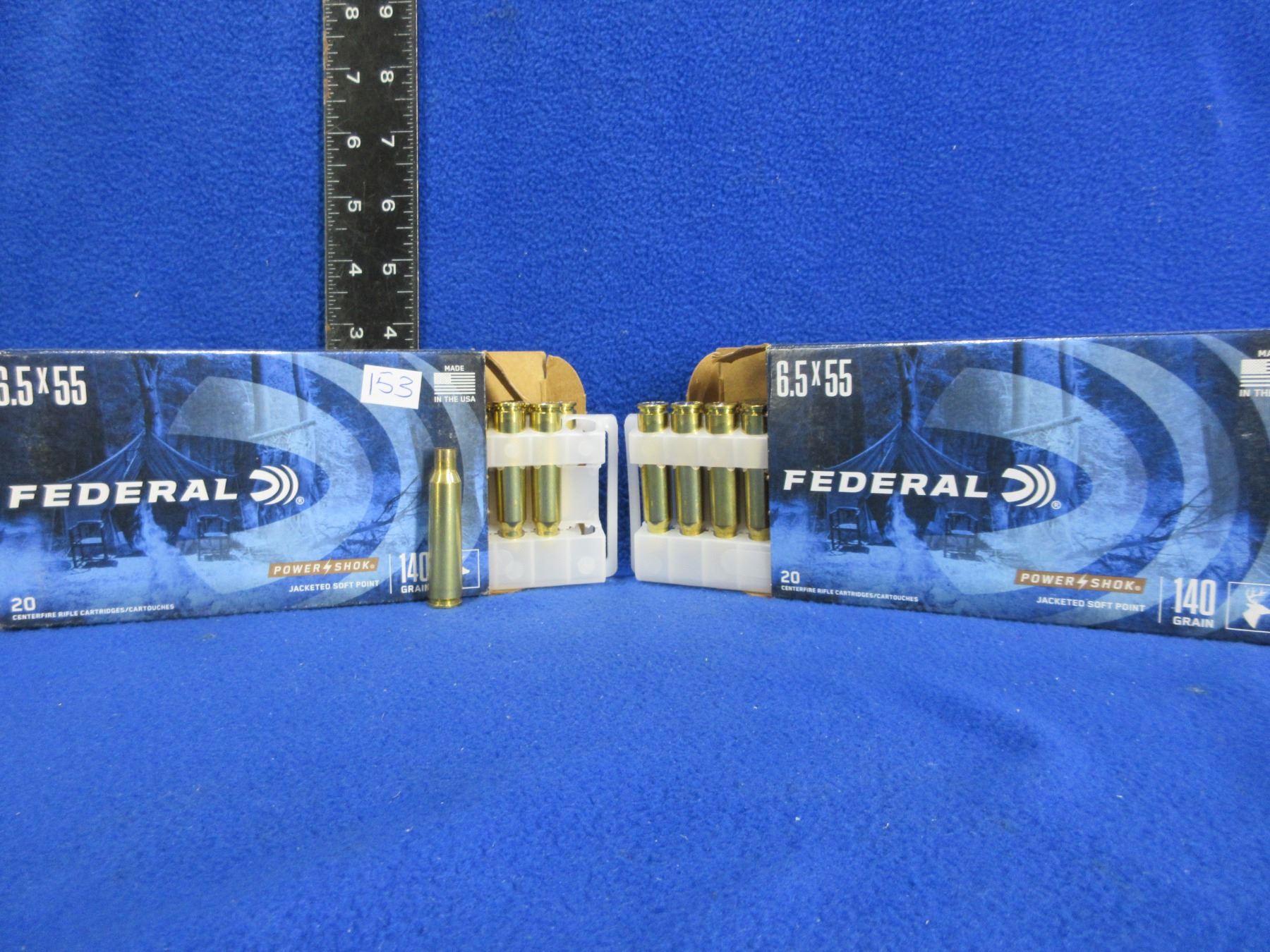 Lot 153 Brass Only - 6.5X55 Unprimed Federal - 2 Boxes of 20