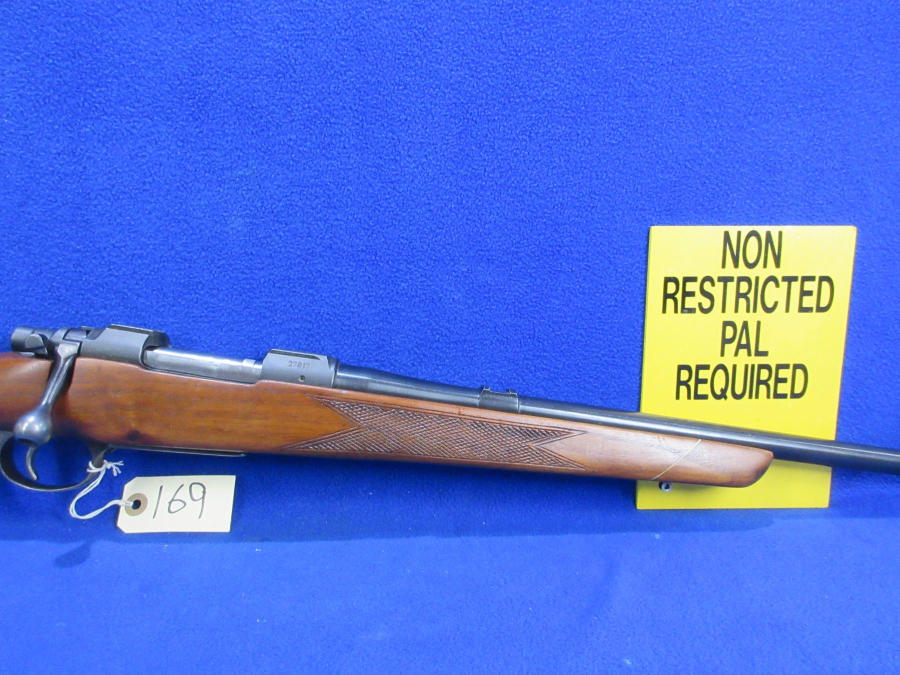 Non-Restricted - BRNO Model ZKK-601 in 308 Win - This is a bolt action rifle with floorplate magazine, action appears to be in good to very good working order. Barrel is 23 3/4", rifling is good to very good, bluing is good, sights are missing but has integral BRNO base and is drilled and tapped, stock is good with usage marks, length of pull is 13 1/4", butt plate good, comes with rear swivel and front swivel stud. Ser # 27917