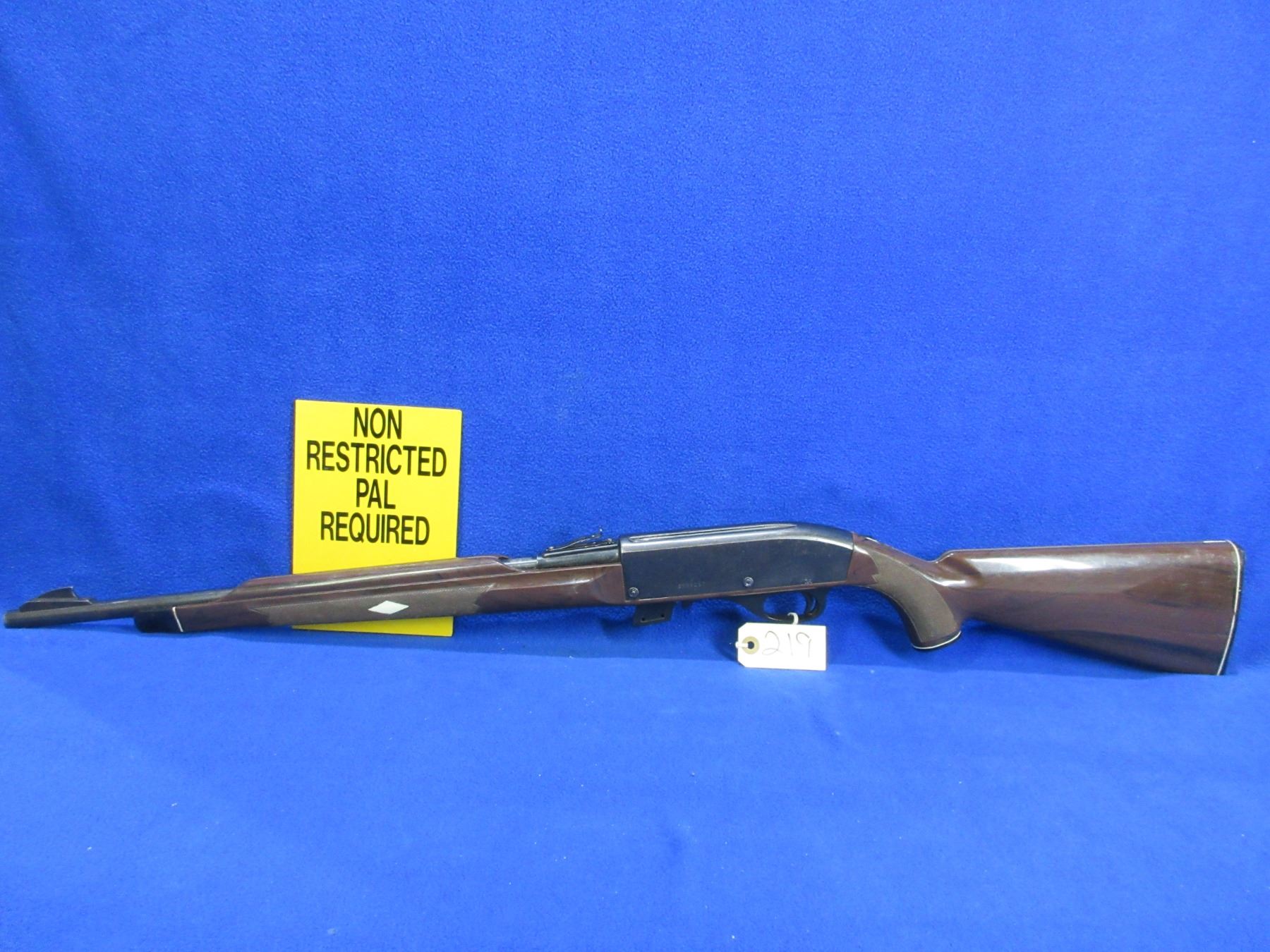 Non-Restricted - Remington Nylon 77 in 22 LR - This is a semi-auto rifle with removable magazine, action appears to be in good to very good working order. Barrel is 19 1/2", rifling is good to very good, bluing is fair to good with some light rust and pitting, has both sights but rear sight is missing the ramp, nylon stock is good with many usage marks, length of pull is 13 1/2", butt plate good. Ser # 2195117