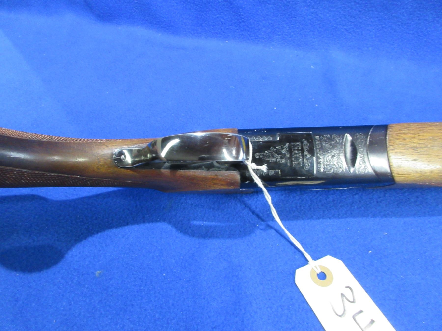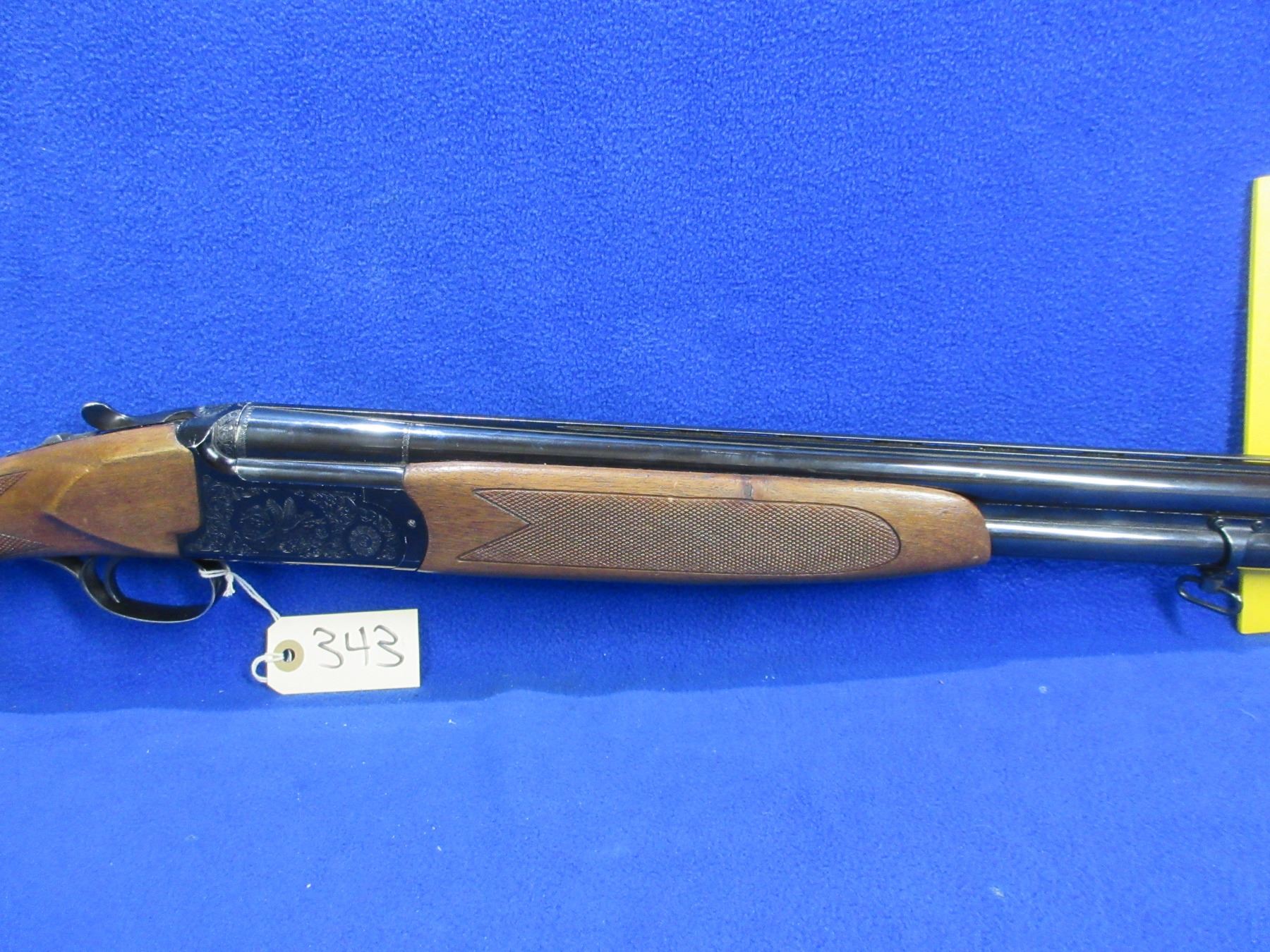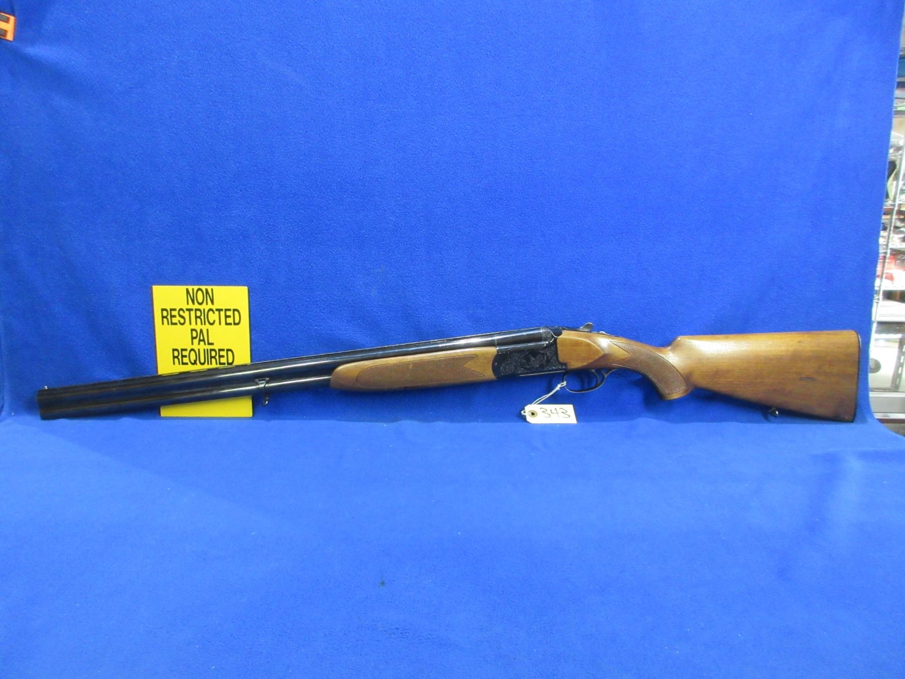 Non-Restricted - Franchi Brescia in 12 Ga. 2 3/4" Mod/Full - This is an over/under shotgun with chokes, nicely engraved action is tight and appears to be in good working order. Vent rib barrels are 28", bores are good but top barrel has a dent approx 4 1/2" from muzzle, bluing is good, has bead front sight, stock is good with usage marks, forearm is good with usage marks, length of pull is 14 1/4", butt plate good, comes with swivels. Ser # 400586
