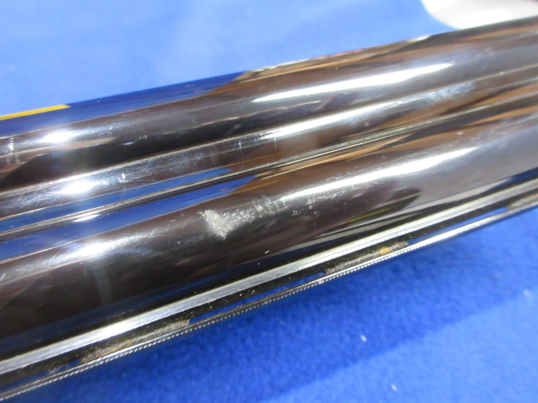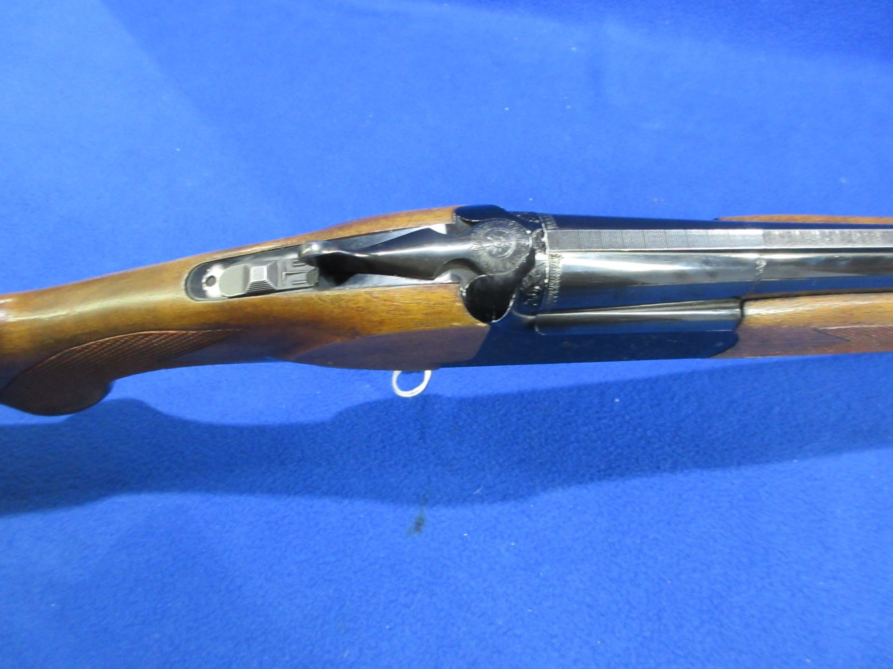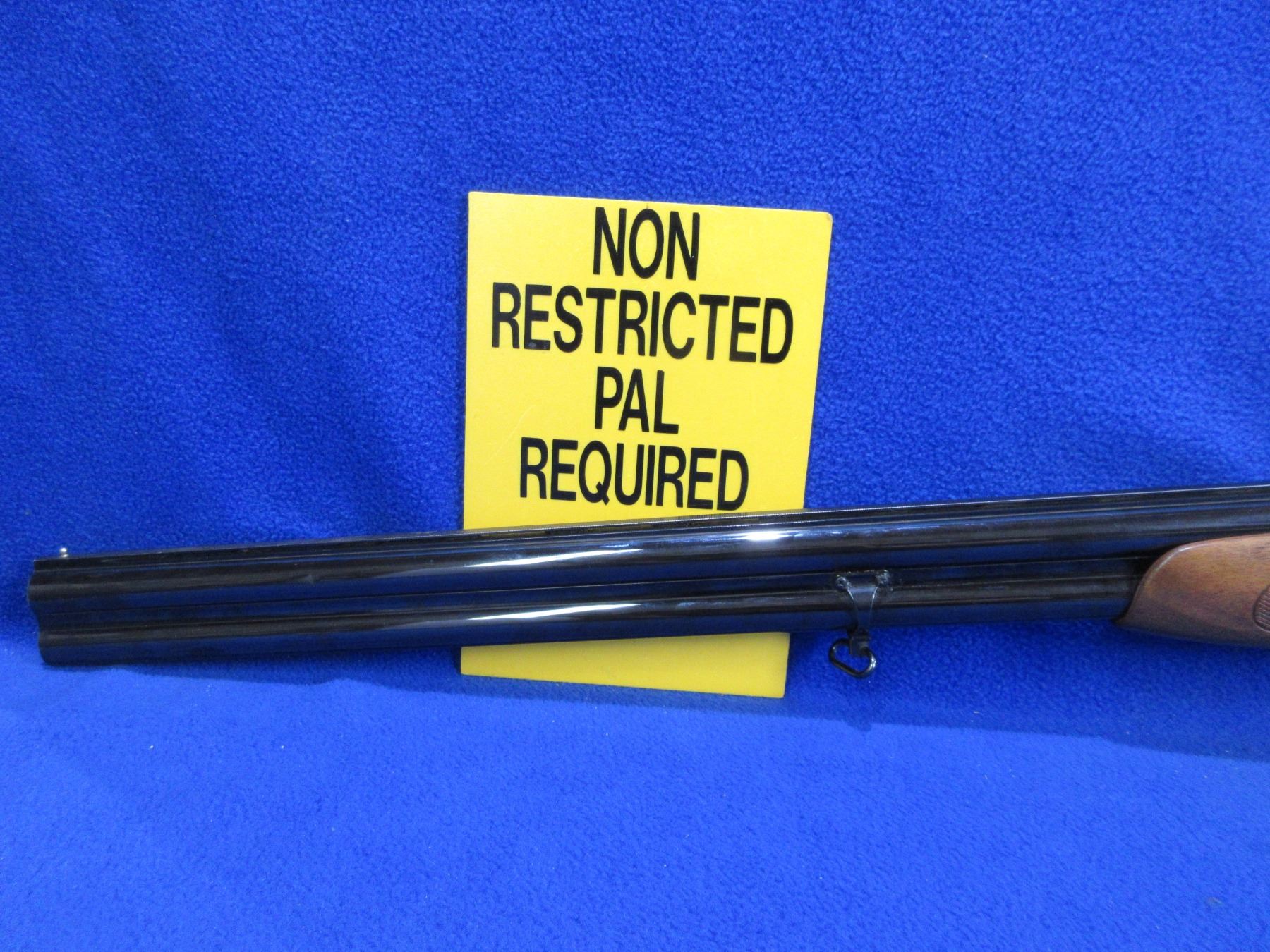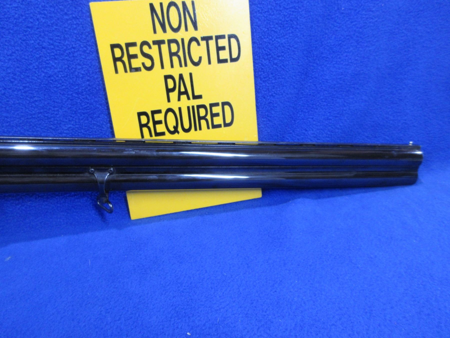 Non-Restricted - Franchi Brescia in 12 Ga. 2 3/4" Mod/Full - This is an over/under shotgun with chokes, nicely engraved action is tight and appears to be in good working order. Vent rib barrels are 28", bores are good but top barrel has a dent approx 4 1/2" from muzzle, bluing is good, has bead front sight, stock is good with usage marks, forearm is good with usage marks, length of pull is 14 1/4", butt plate good, comes with swivels. Ser # 400586