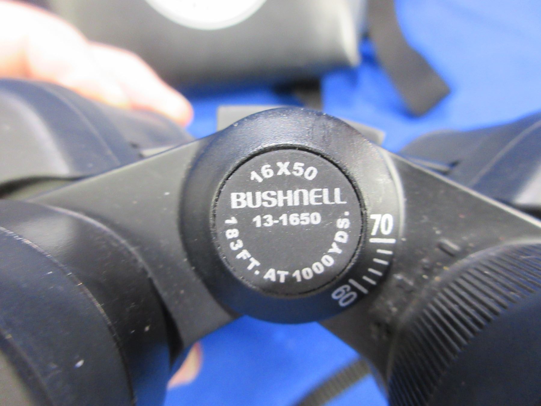Lot 353 Bushnell 16x50 Binoculars with Lens Covers, Soft Case and Neck Strap