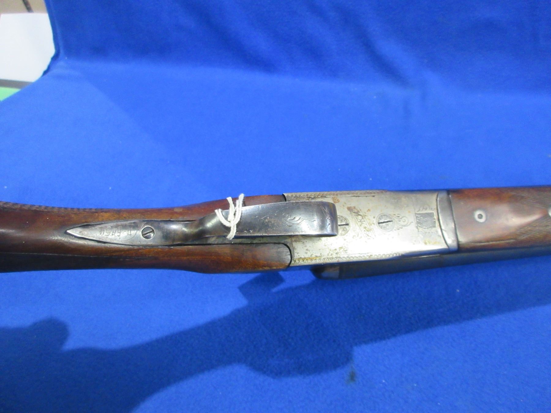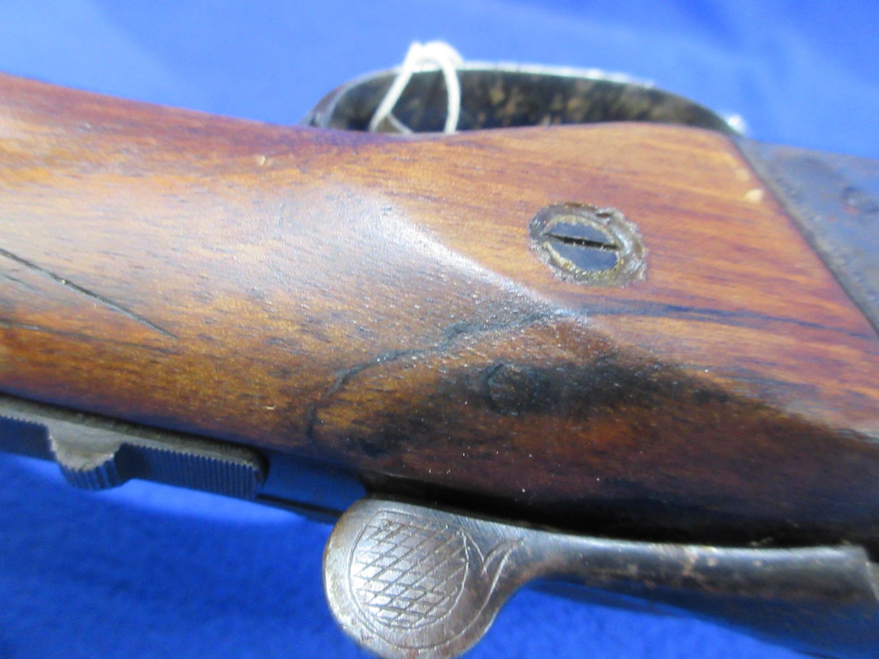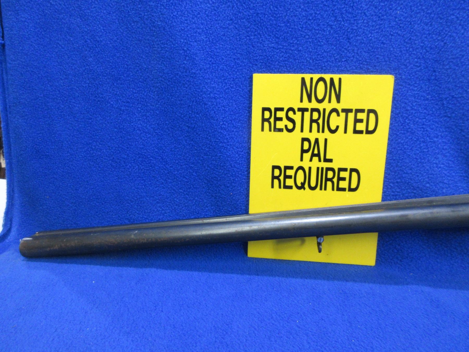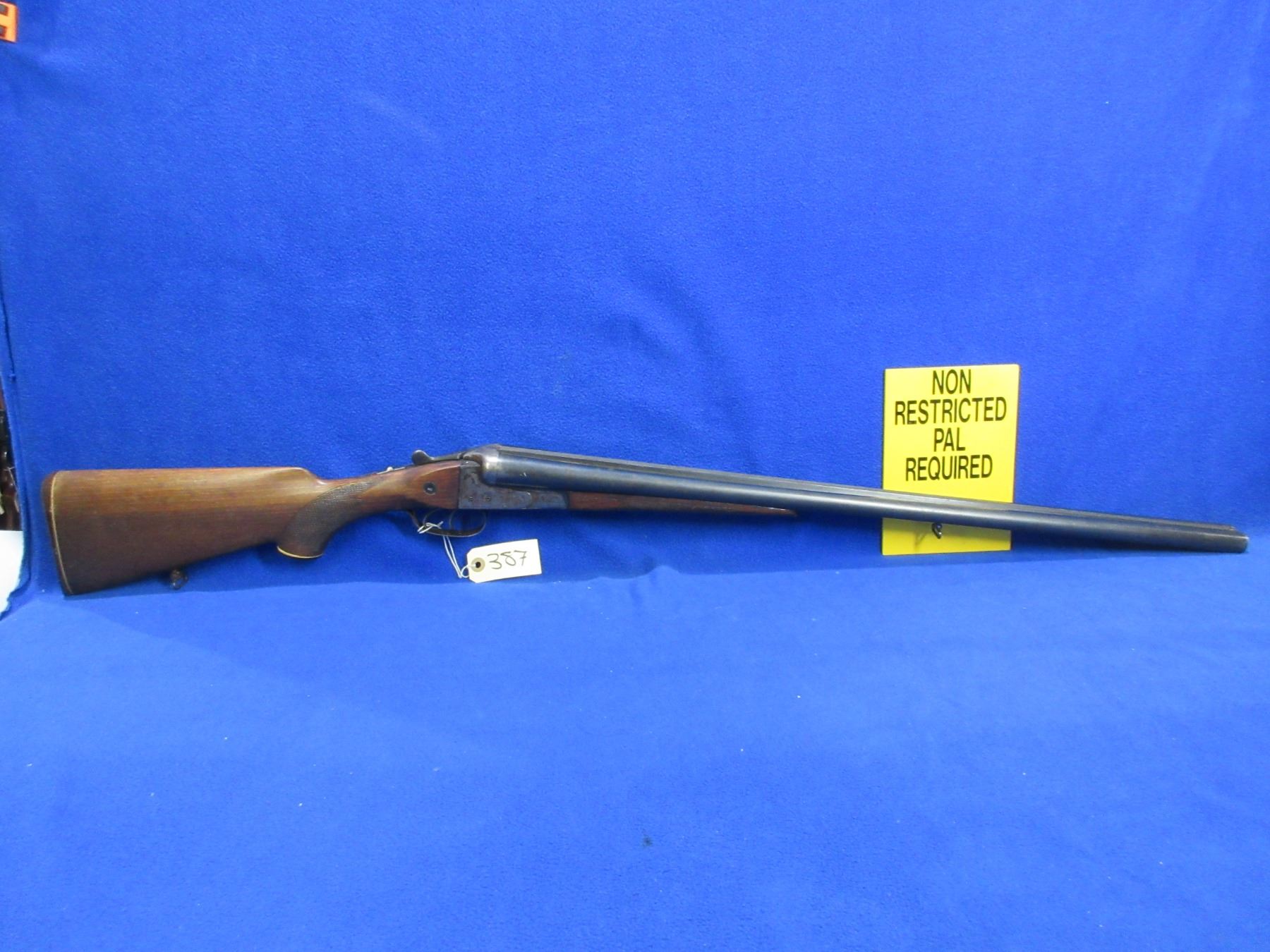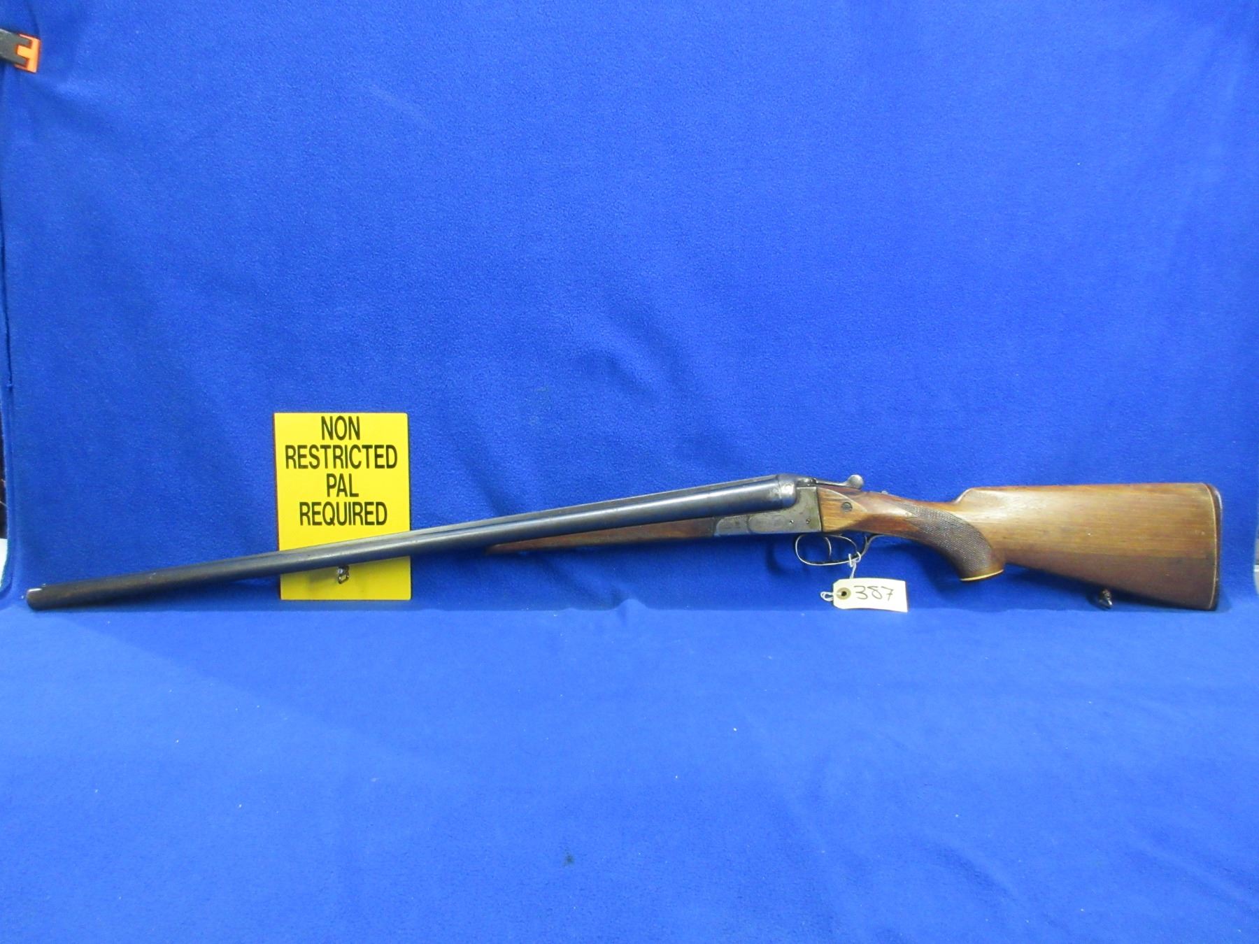 Non-Restricted - Baikal Model IJ-54 in 12 Ga. 2 3/4" - This is a tip up SXS shotgun with chokes, action is tight and appears to be in good working order. Barrels are 28 5/8", bores are good to very good, bluing has some rust and pitting, has bead front sight, stock appears to have crack repairs on both sides on top behind the action, forearm is goodwith usage marks, length of pull is 14 3/4", butt plate good, comes with swivels. Ser # 6454