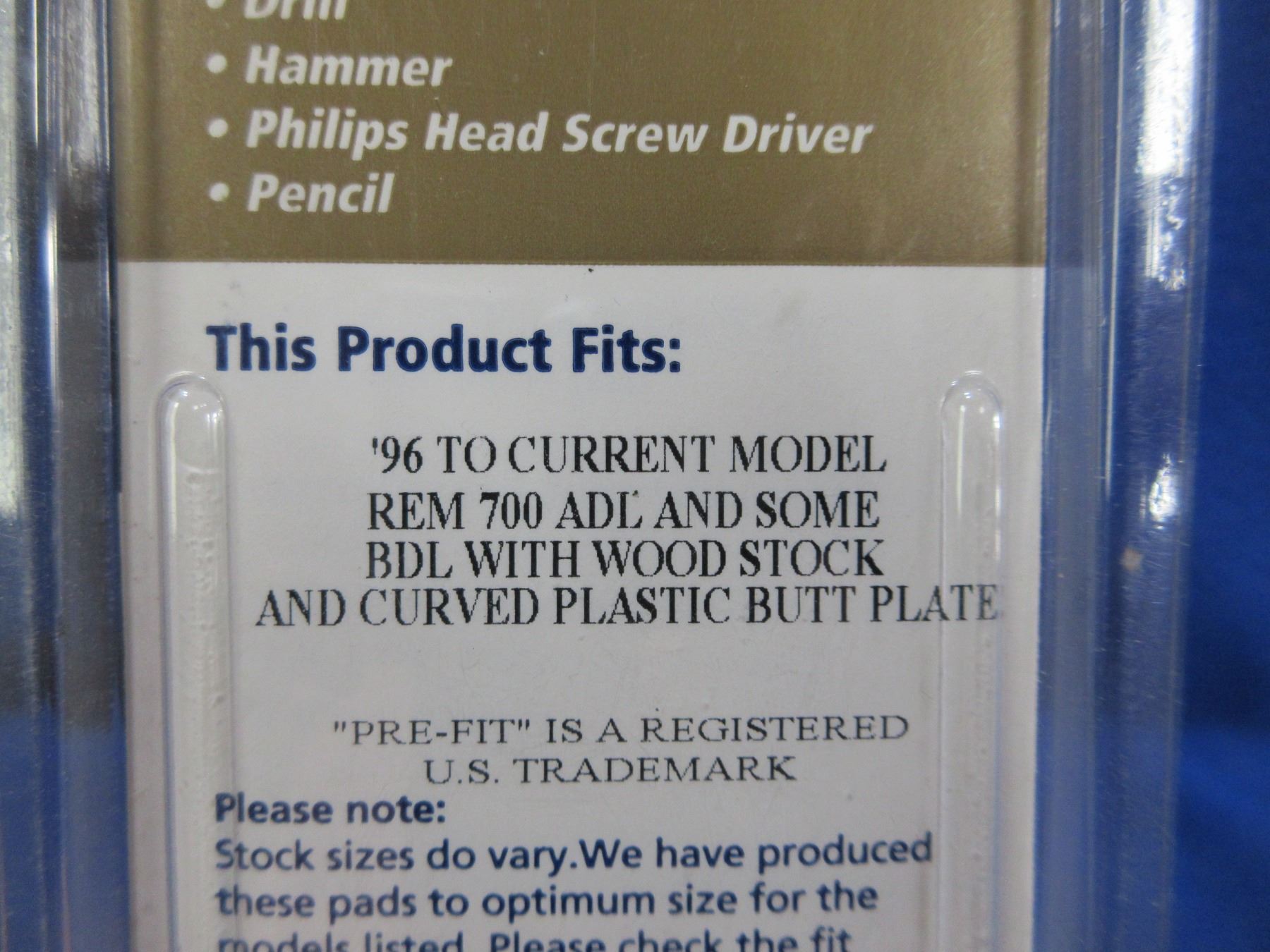 NEW - Pachmayr Pre-Fit Decelerator Recoil Pad - Fits '96 to current model Rem. 700 ADL and some BDL with wood stock and curved plastic butt plate