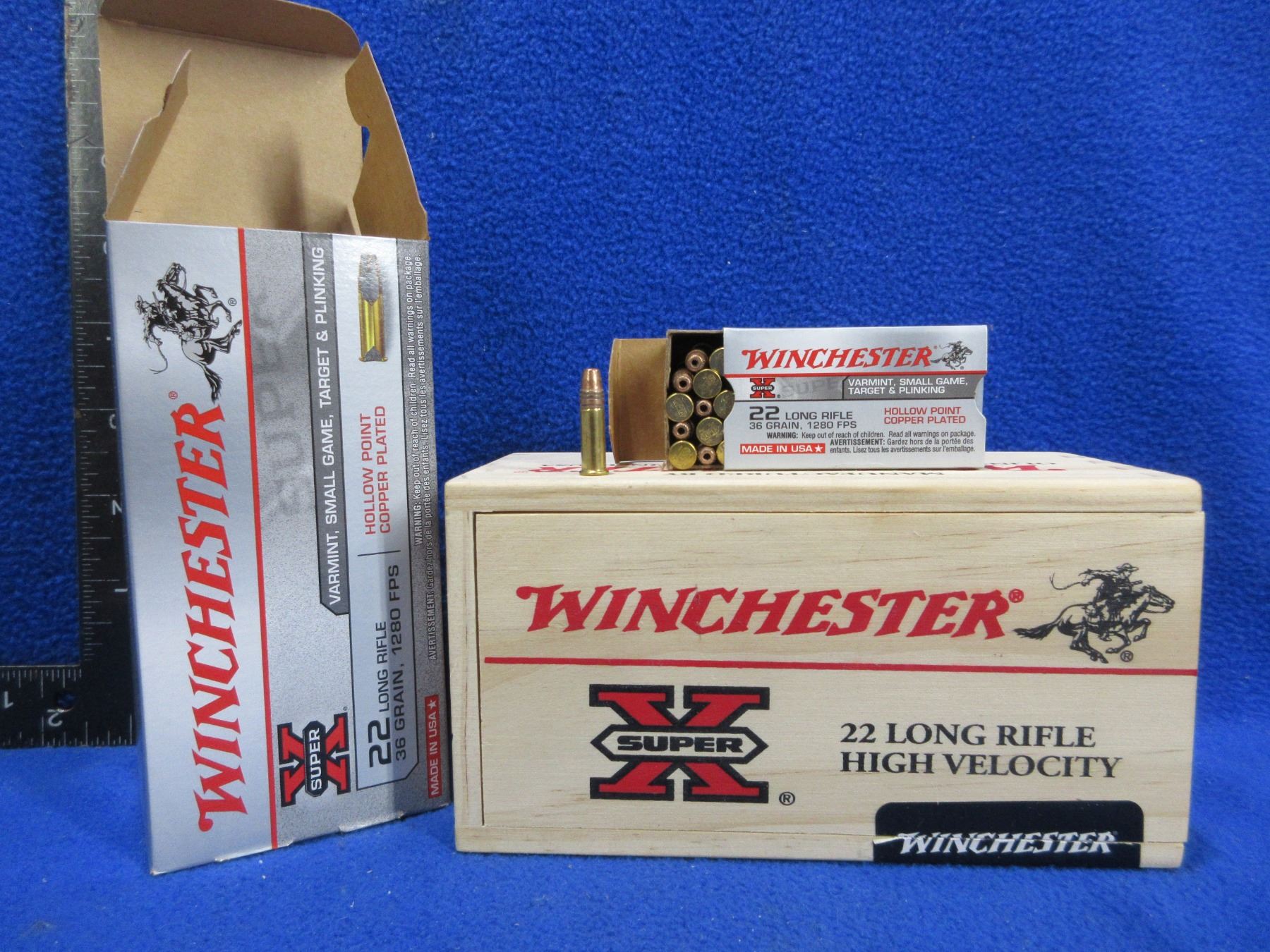 22 LR 36gr Copper-Plated HP (Pick Up or Ship by UPS Only) Winchester Cartridges - Carton of 500 in Limited Edition Wood Winchester Collector Box