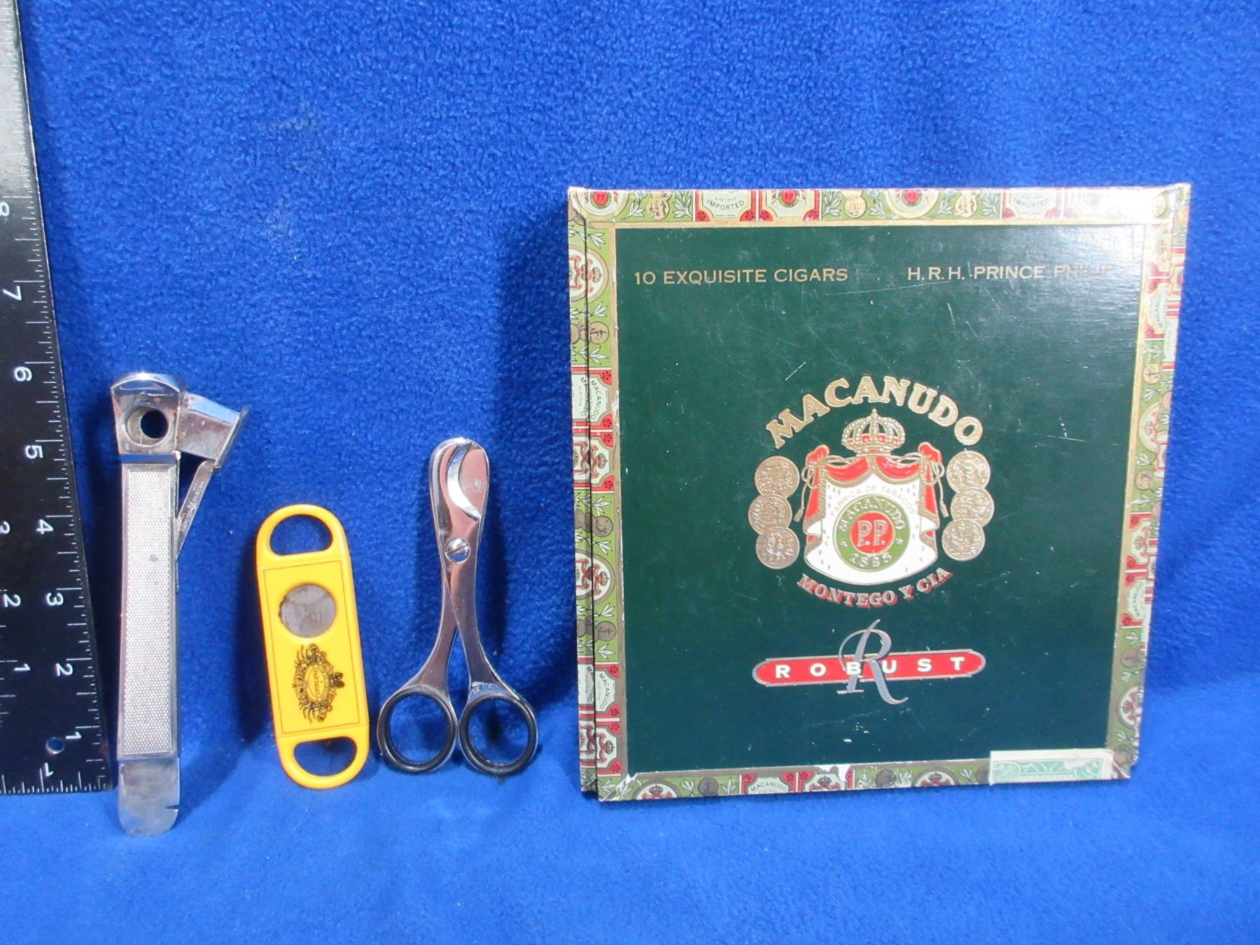 Lot 468 3 Vintage Cigar Cutters in Cigar Box