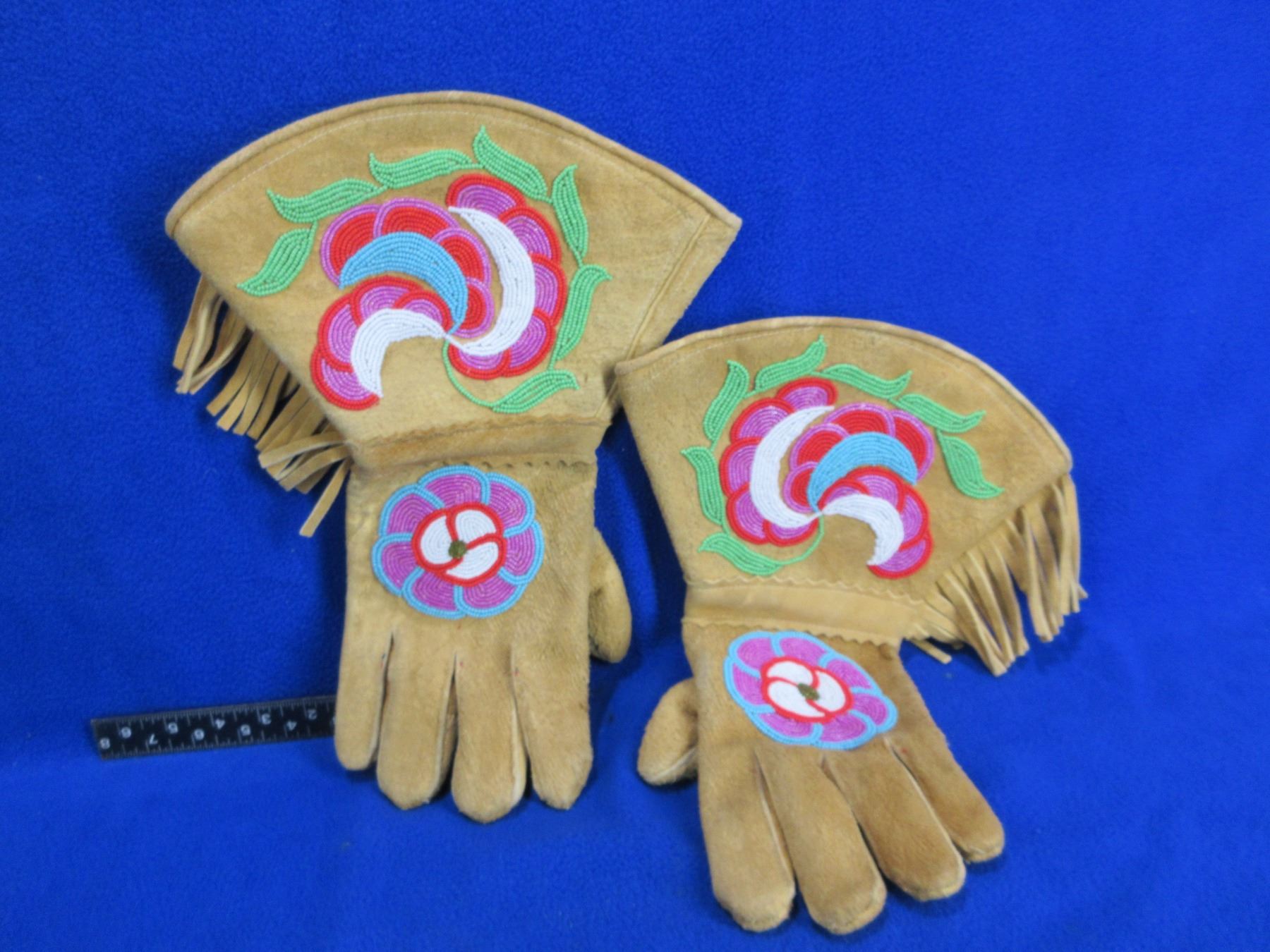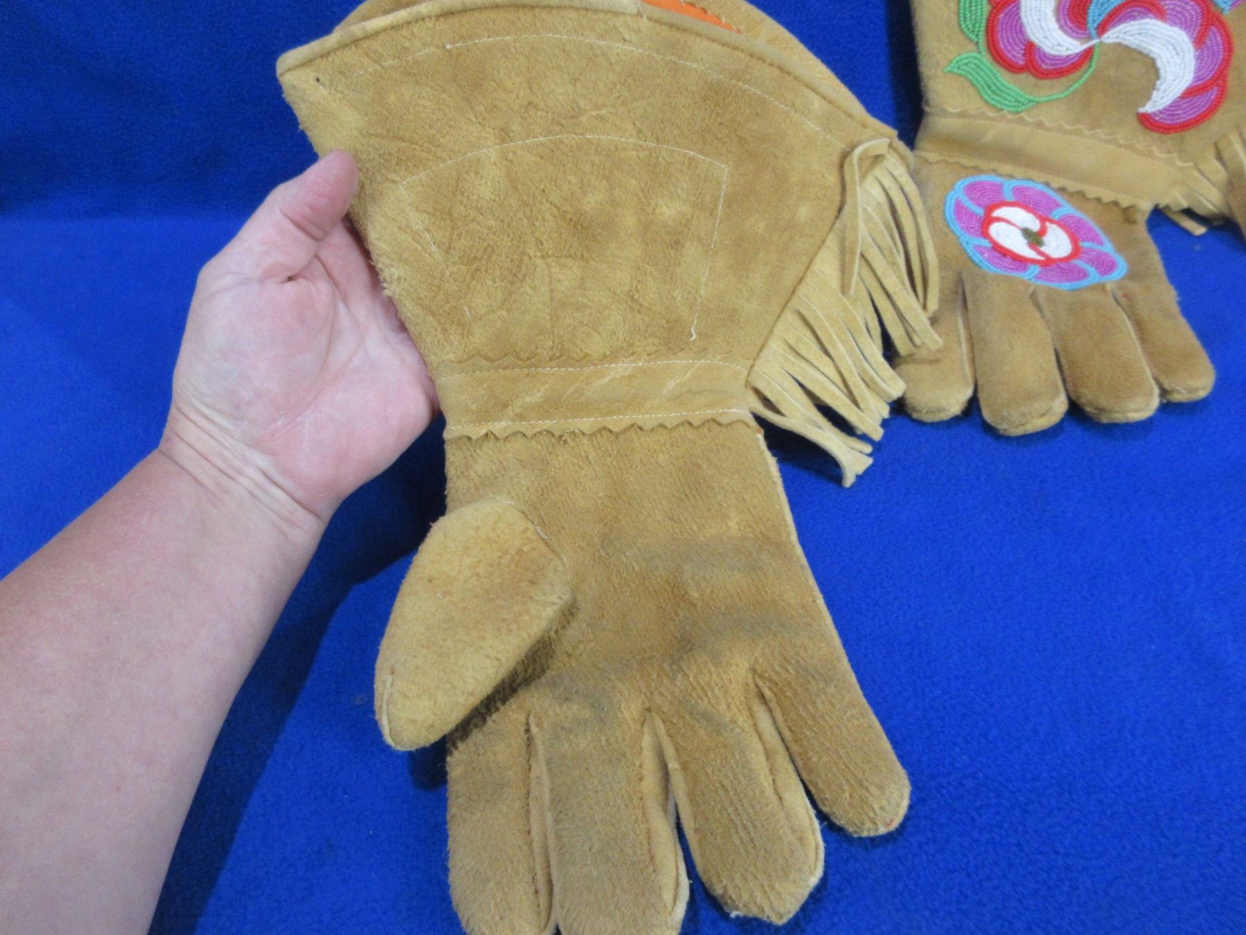 Native American Leather Gloves with Beadwork and Fringes - In Nice Condition and Appear to be Ladies Size Large