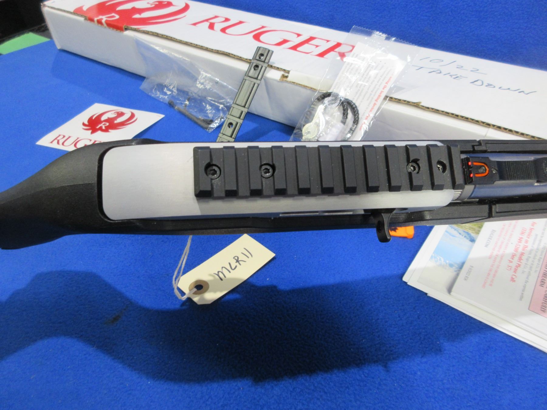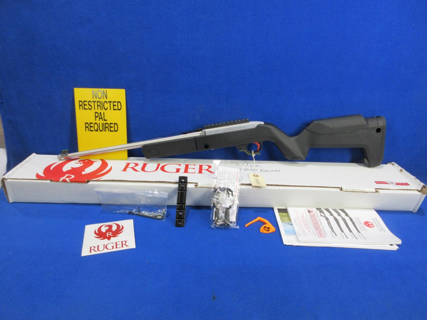 NEW - Non-Restricted - Ruger 10/22 Takedown in 22 LR - This is a NEW semi-auto Takedown rifle with 4 removable magazines. Satin Stainless barrel is 16.63", length of pull is 13 1/4". Comes with 4 rotary magazines (3 Magazines in Magpul cheek riser and storage compartment), original box, extra base, cable lock and paperwork. Ser # OO24-76705