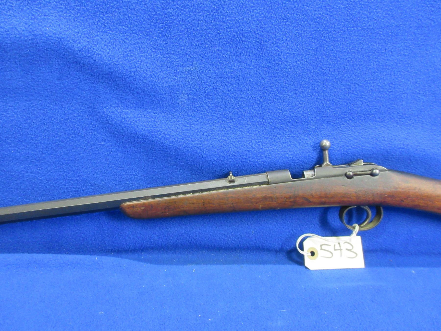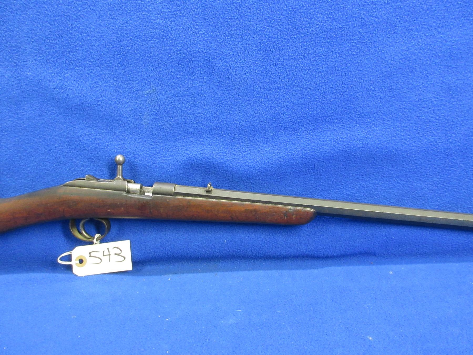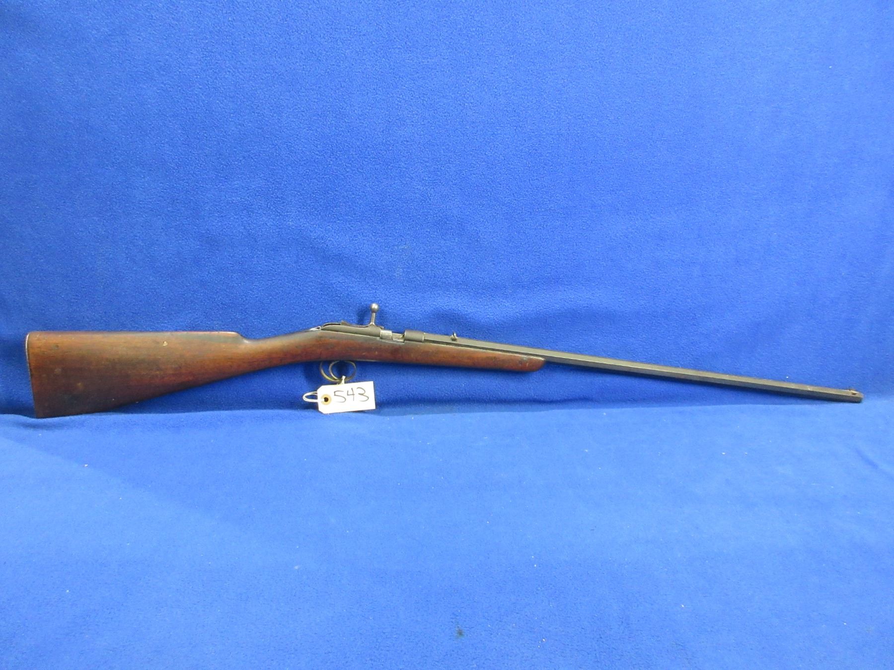 No PAL Required - Deactivated Husqvarna Single Shot in 22 LR- This is a deactivated single shot bolt action rifle. Octagon barrel is 24 1/2" and has been welded at the breach, bluing is fair to good, has both sights, stock is fair to good with usage marks, length of pull is 13 3/4", metal butt plate, swivels missing. Ser # None