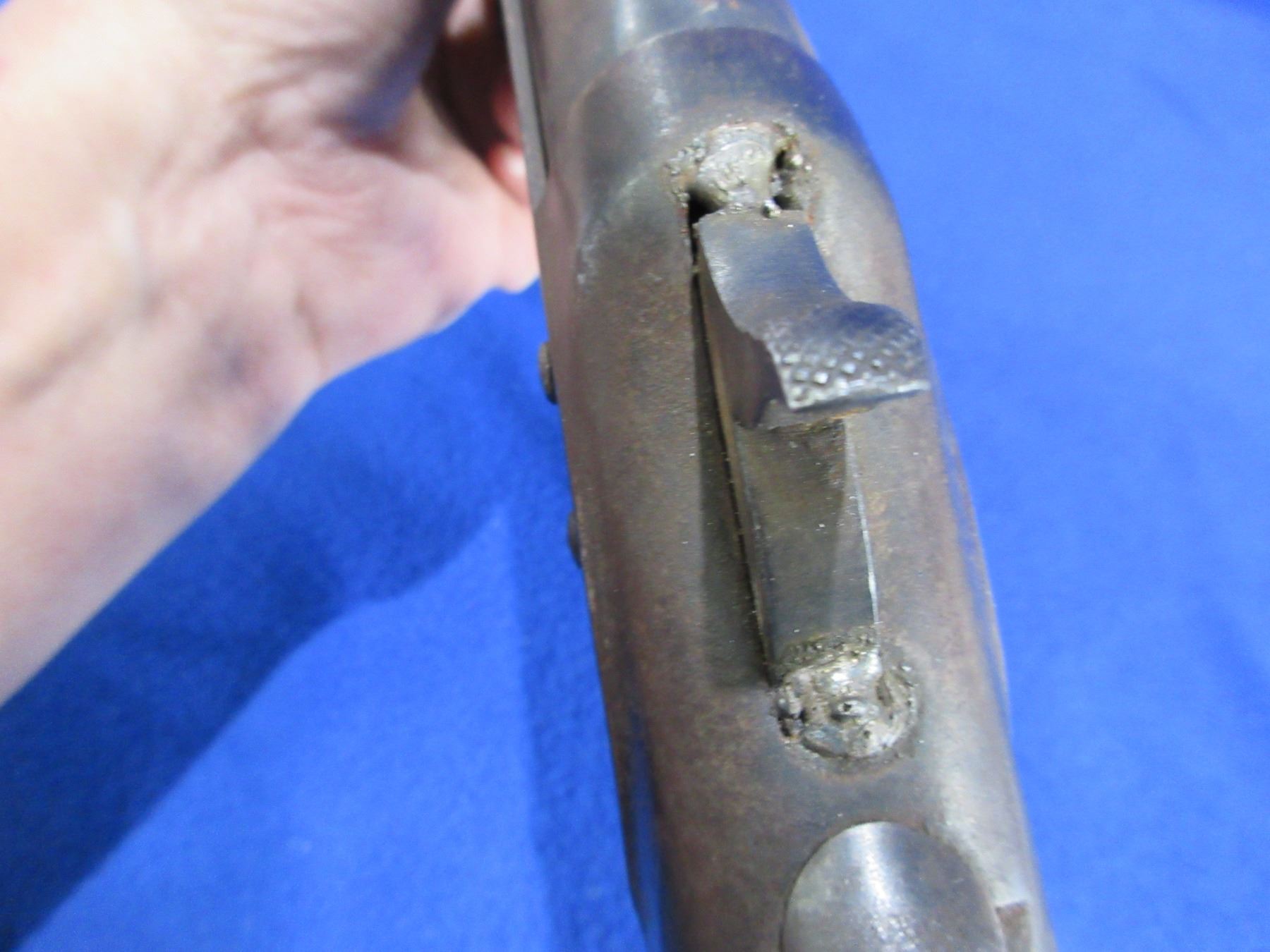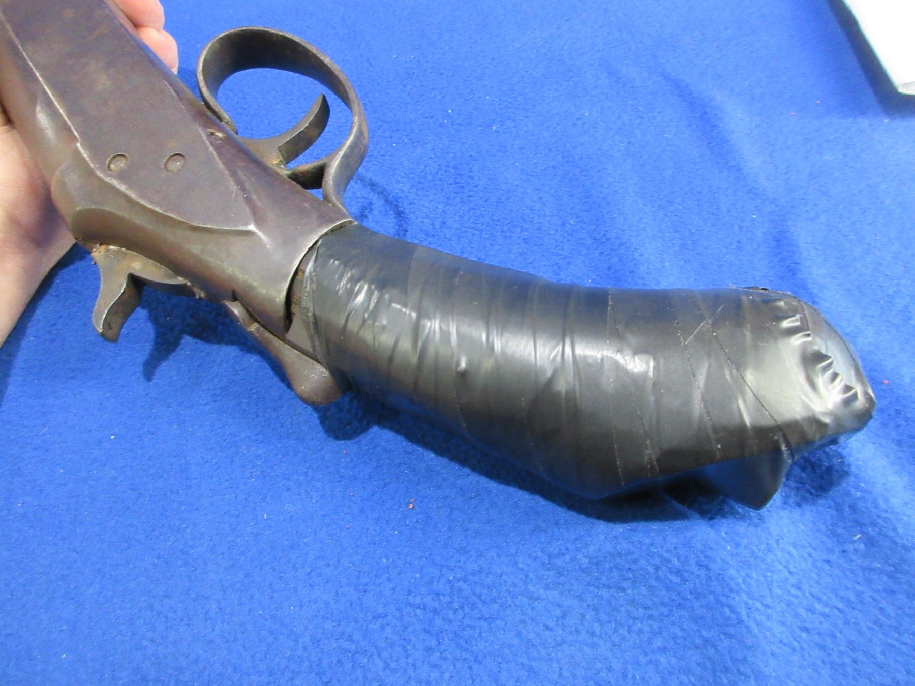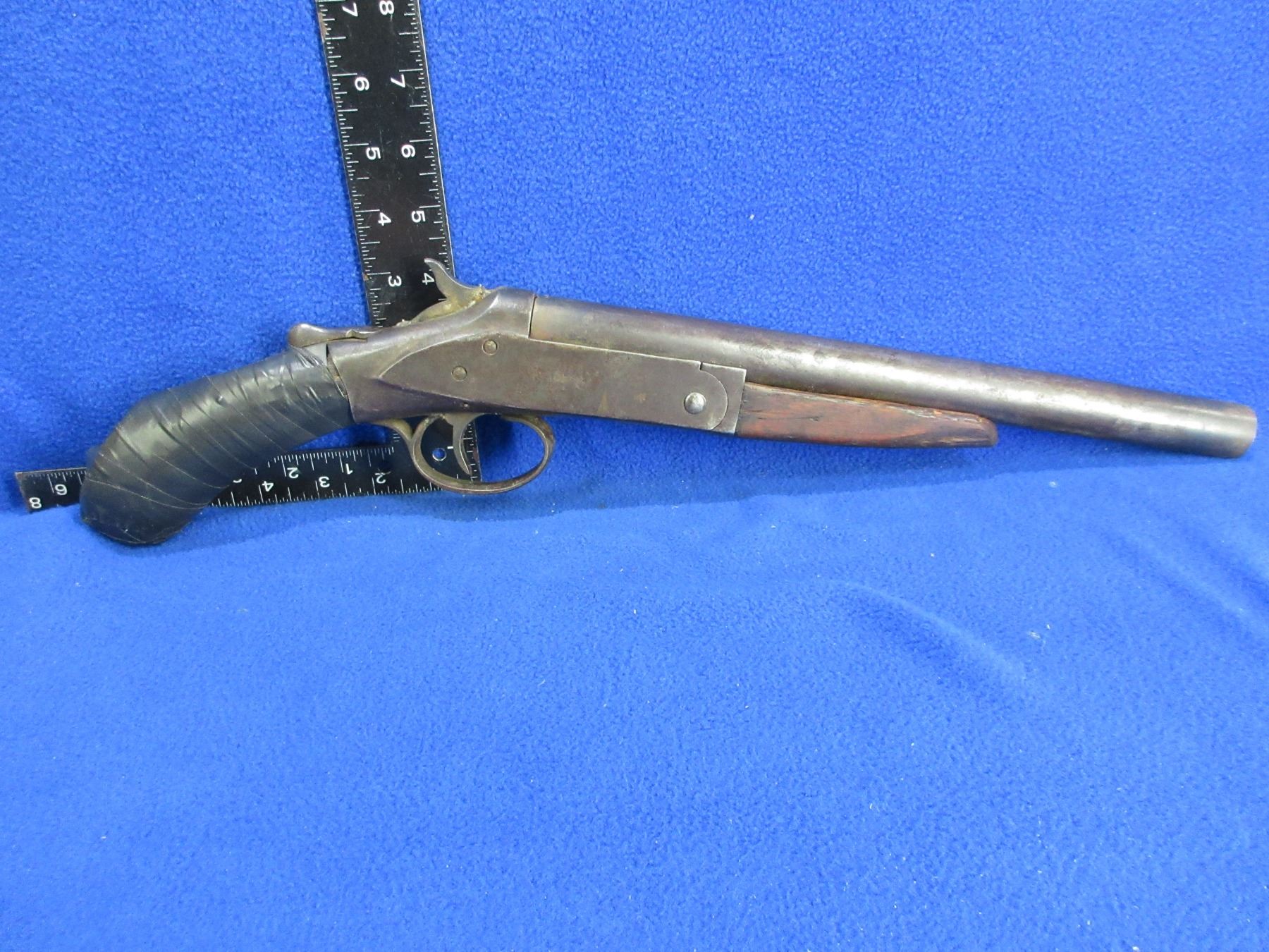 No PAL Required - Deactivated Hopkins & Allen Shotgun - Unknown Gauge - This single shot shotgun has trigger, hammer and muzzle welded. Barrel has been cut and stock has been modified to pistol grip and is taped.