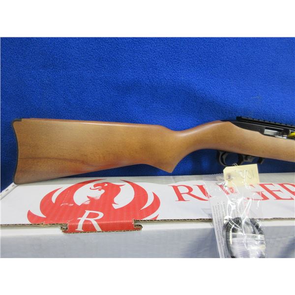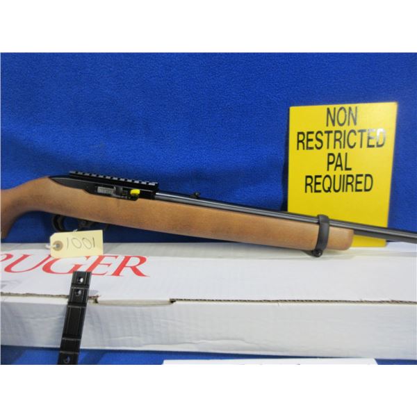 NEW - Non-Restricted - Ruger 10/22 Carbine in 22 LR - This is a NEW semi-auto rifle with removable magazine. Barrel is 18 1/2", length of pull is 13 1/2", comes with original box, cable lock, extra base and paperwork. Ser # OO21-90027