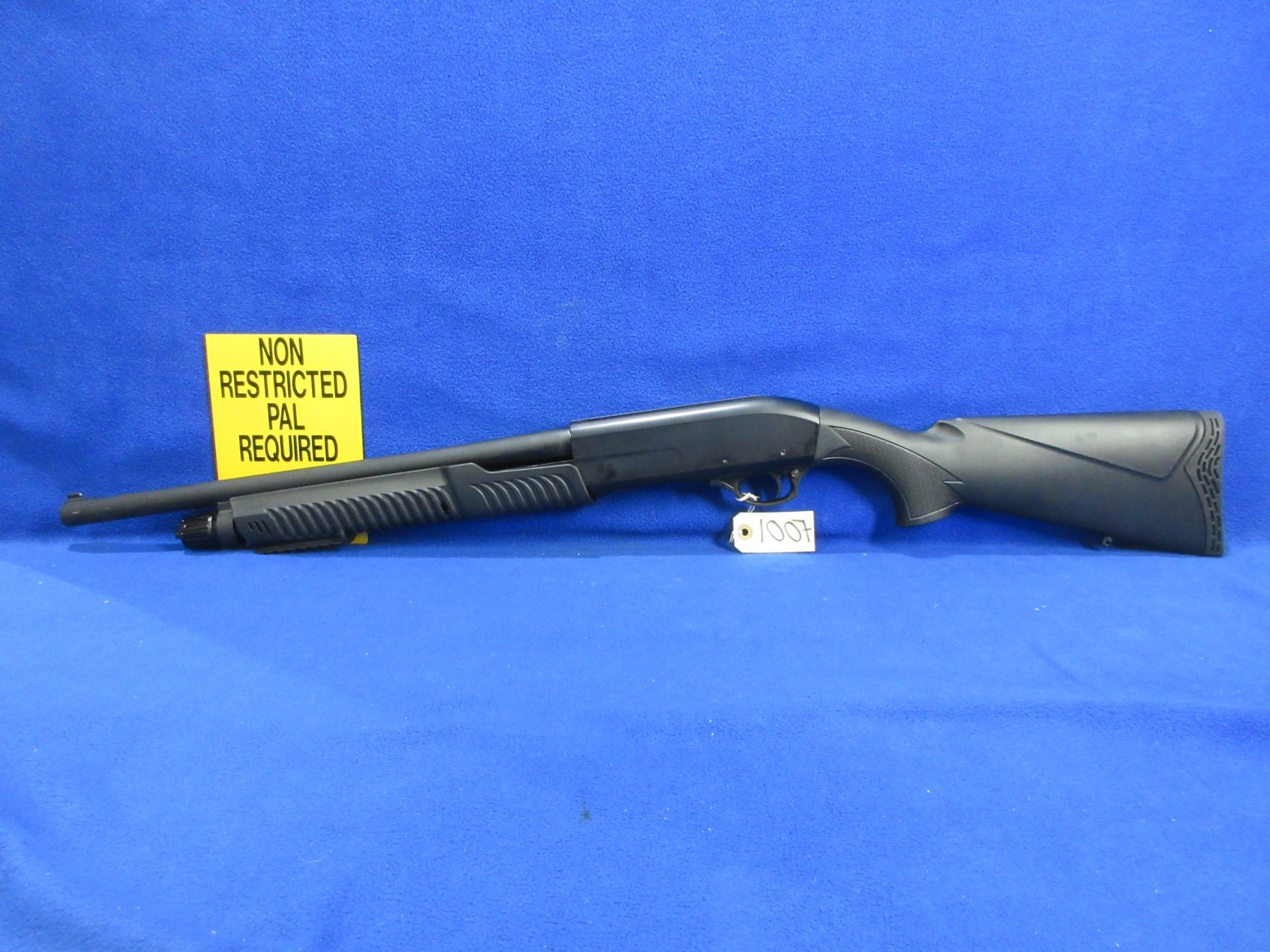 Non-Restricted - Rokin Model PX-4 in 12 Ga. 3" - This is a pump action shotgun with tube magazine, action appears to be in very good working order. Barrel is 18.5", bore is good, black finish is good to very good, has blade front sight and integral rail, synthetic stock is very good, forearm is very good, length of pull is 14 1/2", rubber recoil pad very good, comes with swivel studs. Ser # 21CA-RKP0621-40
