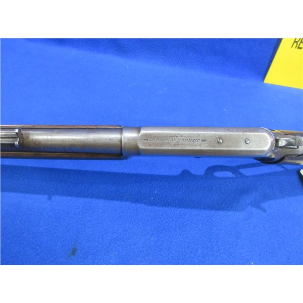 Non-Restricted - Marlin Model 1893 Safety in 32-40 Black Powder. - This is a lever action rifle with tube magazine, action appears to be in good to very good working order. Barrel is 26", rifling is good, bluing is gone, has both sights but rear sight is missing ramp, stock has cracks in the wrist area, forearm is good with many usage marks, length of pull is 13 1/2", crescent metal butt plate good. Ser # 440144