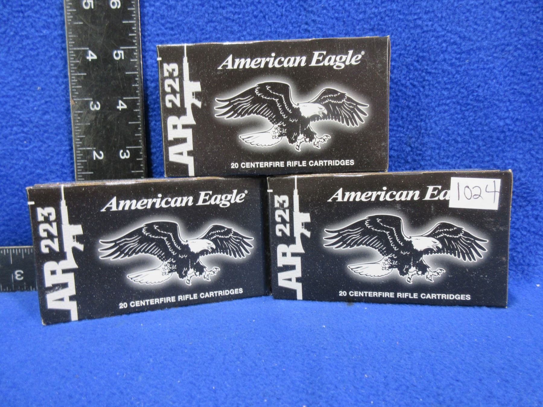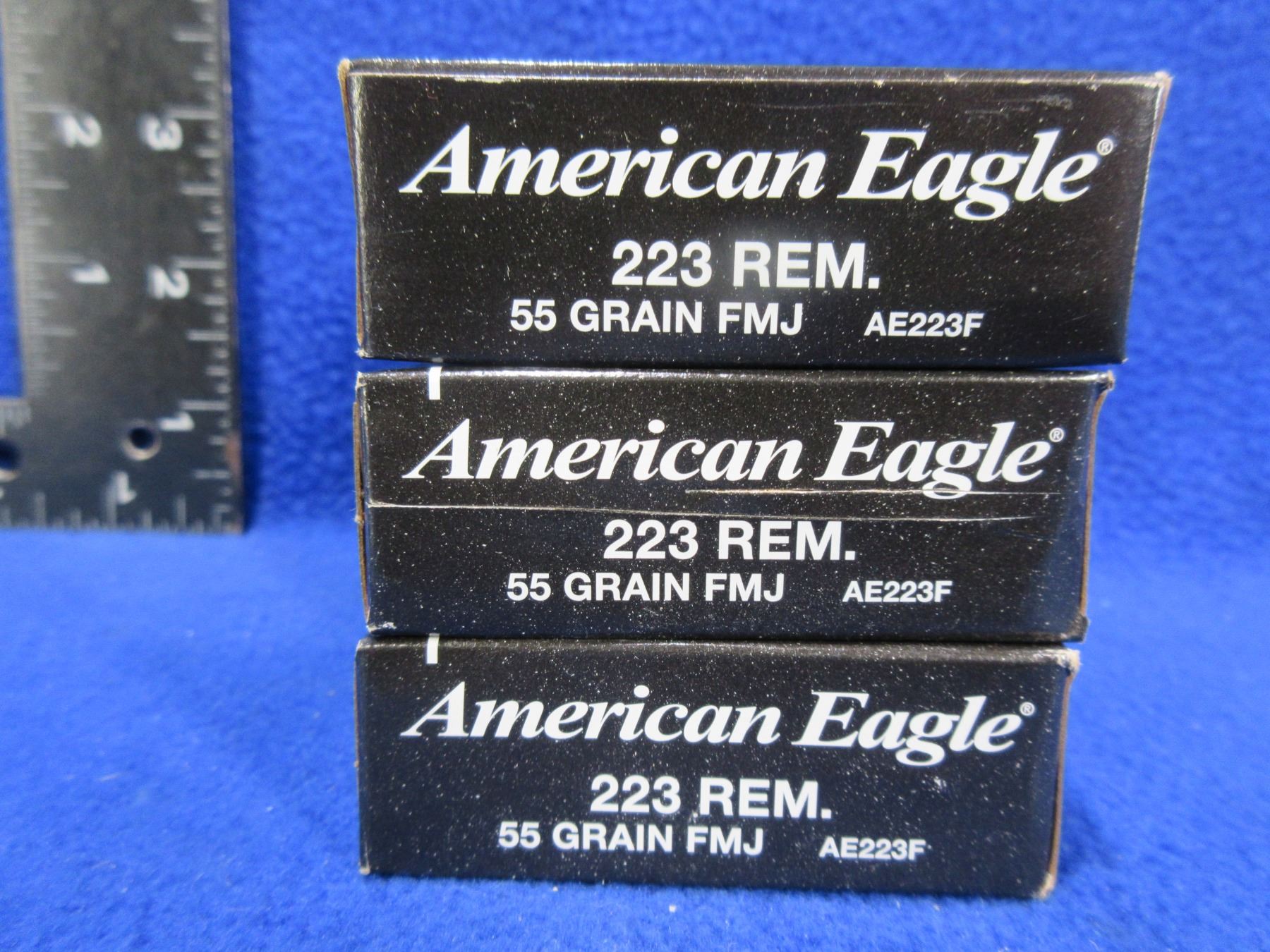 223 Rem. 55gr FMJ Federal (Pick Up or Ship by UPS Only) American Eagle Cartridges - 3 Sealed Boxes of 20