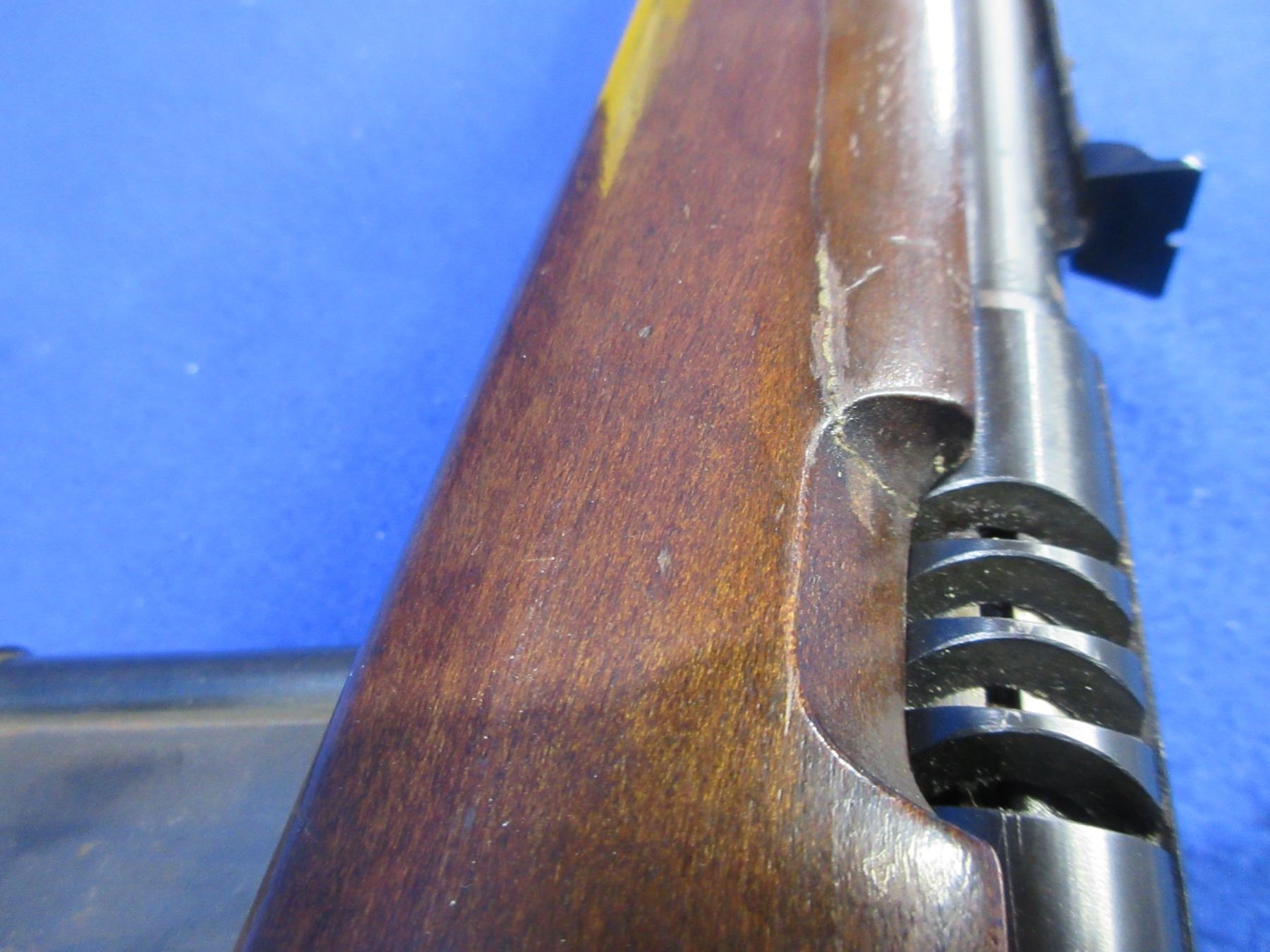Non-Restricted - Sportco Co. Model 71A in 22 Cal - This is a semi-auto rifle with removable magazine, action appears to be in good to very good working order. Barrel is 23", rifling is good to very good, bluing is good, has both sights and integral rail, stock has a crack repair on the left side of the action, length of pull is 13 3/4", butt plate good. Ser # EA2348