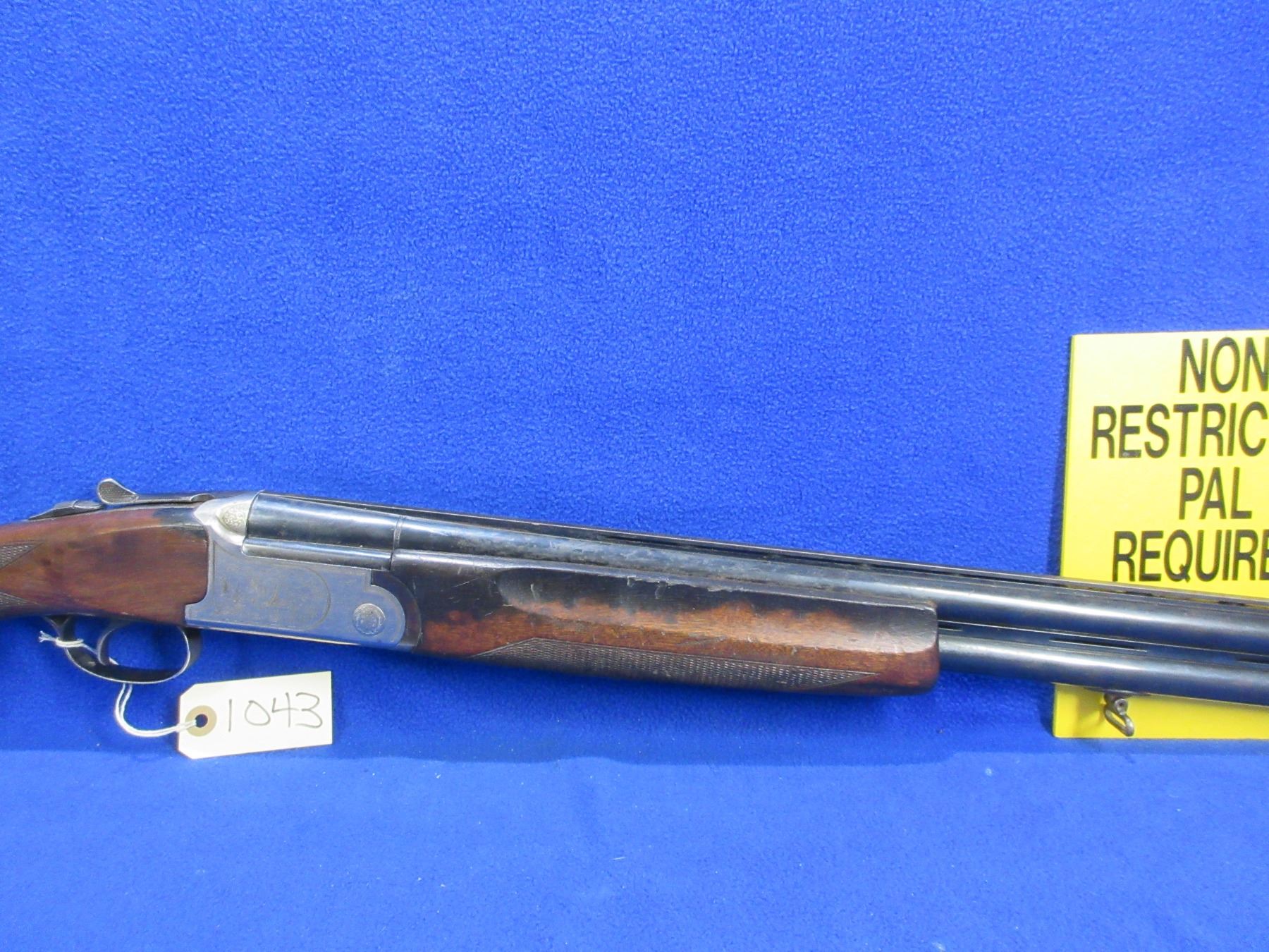 Non-Restricted - Husqvarna Model 300 in 12 Ga. 3" - This is an over/under shotgun with chokes, action is tight and appears to be in good to very good working order. Vent rib barrels are 26", bores are good, bluing is fair to good, bead front sight missing, stock has 2 hairline cracks behind the upper tang, forearm is good with many usage marks, length of pull is 13 3/4", butt plate fitted incorrectly, comes with front swivel, rear swivel missing. Ser # 151959