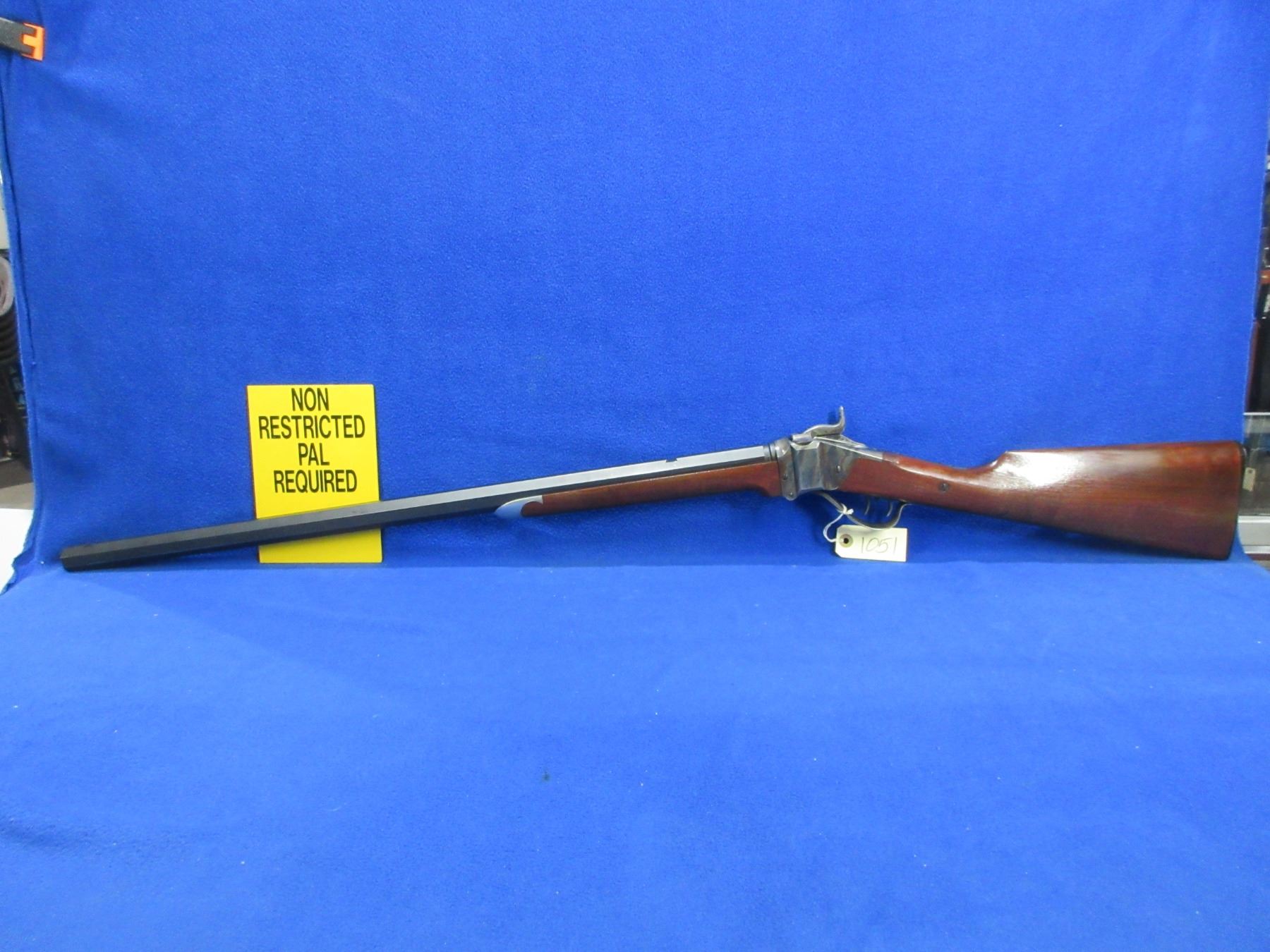 Non-Restricted - Shiloh-Sharps Model 1874 in 45-70 Gov't - This is a single shot under lever falling block rifle, action appears to be in very good working order. Octagon heavy barrel is 30", rifling is good to very good, case hardened action is good to very good but does have stain overrun along some edges, bluing is very good, sights are missing, stock and forearm are good but appear refinished, length of pull is 14 1/4", butt plate good. Ser # B6863