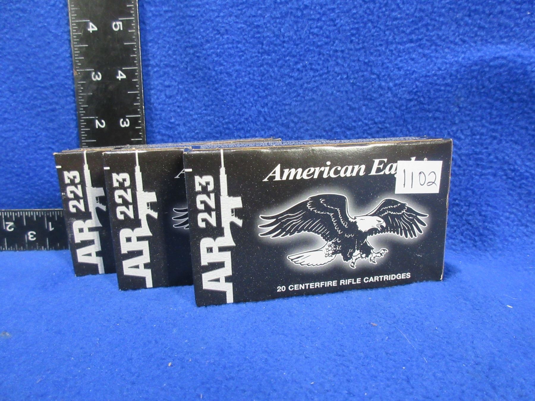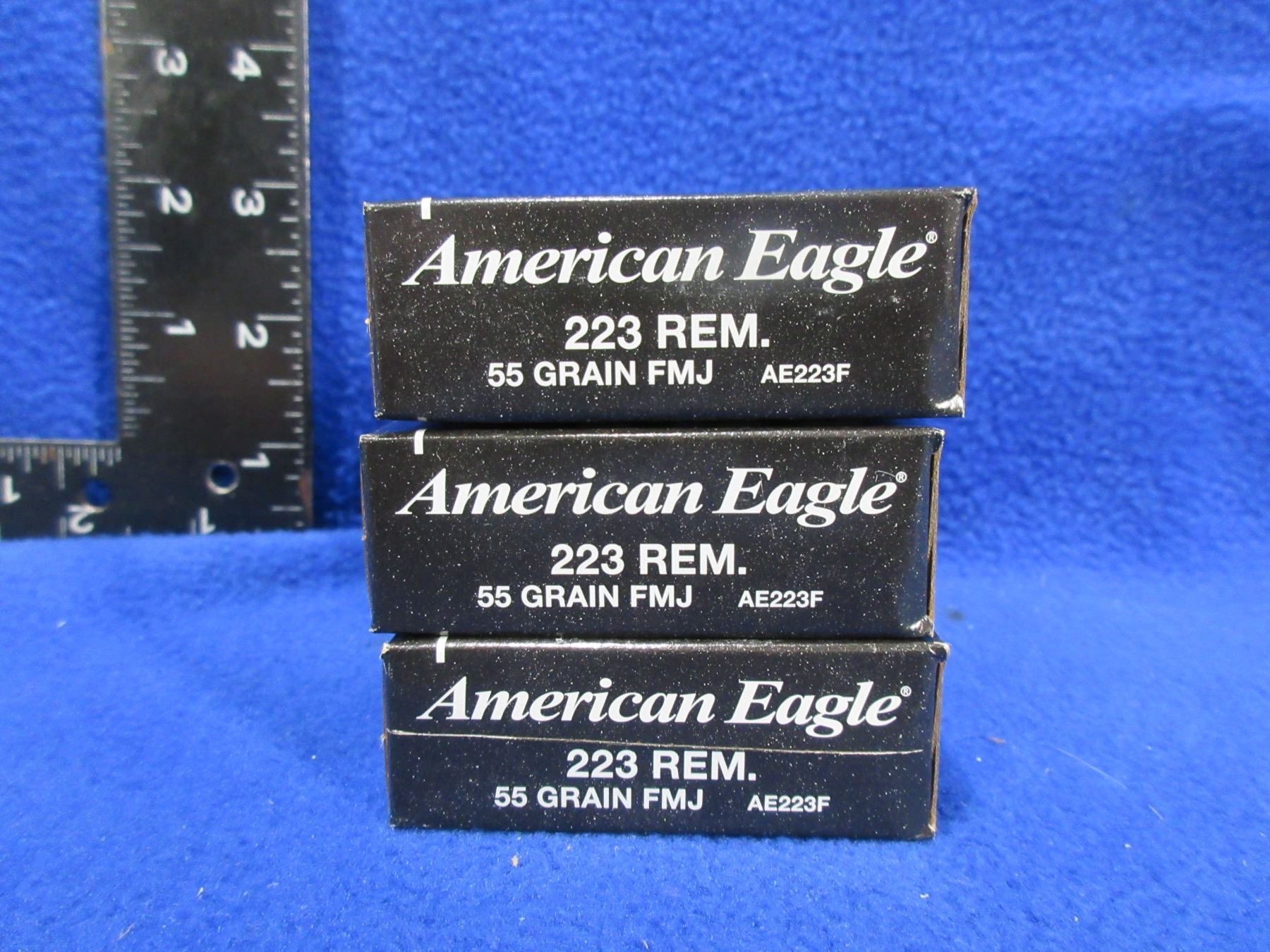 223 Rem. 55gr FMJ Federal (Pick Up or Ship by UPS Only) American Eagle Cartridges - 3 Sealed Boxes of 20