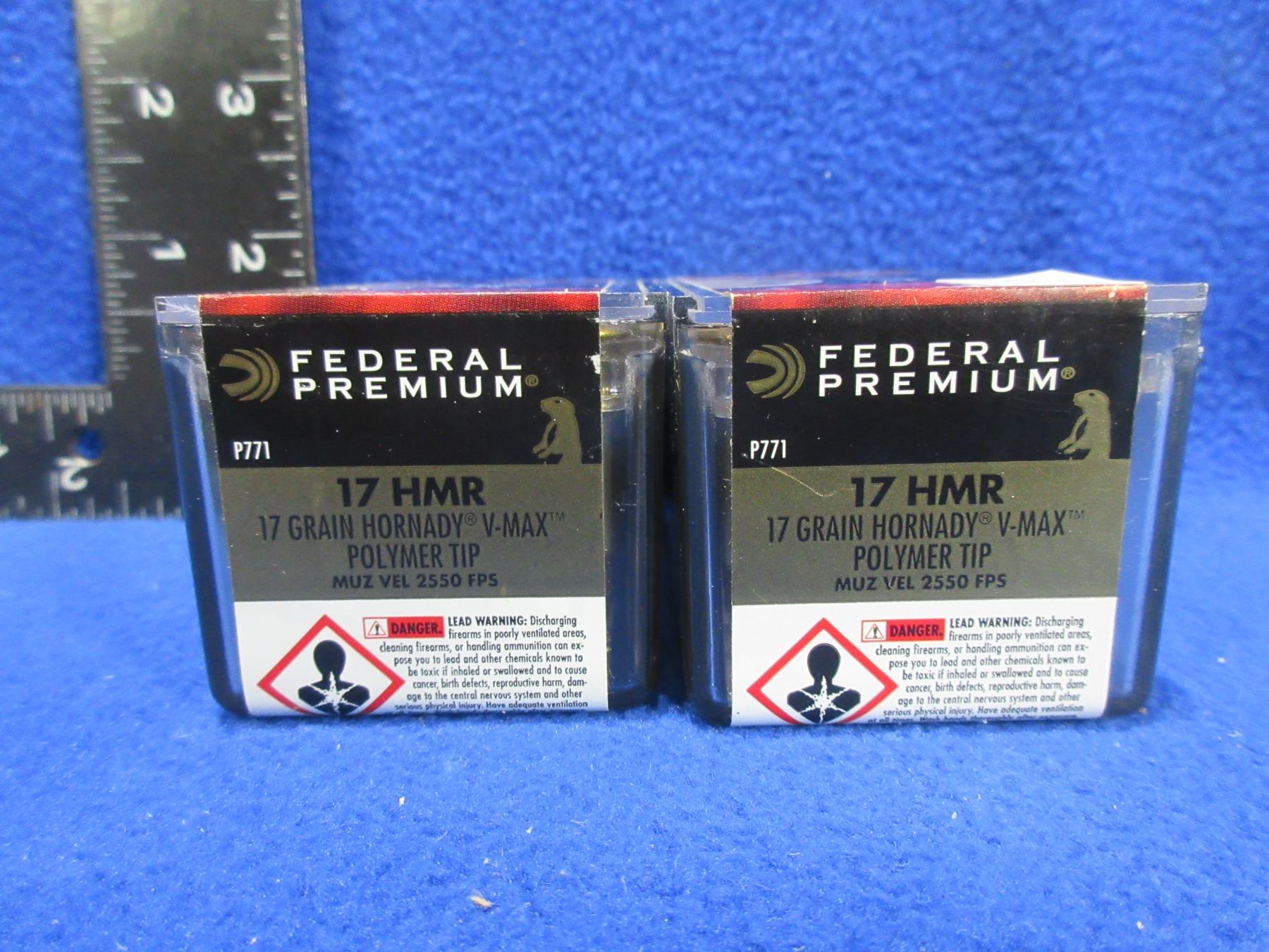 17 HMR 17gr Hornady V-Max (Pick Up or Ship by UPS Only) Polymer Tip Federal Cartridges - 2 Sealed Boxes of 50