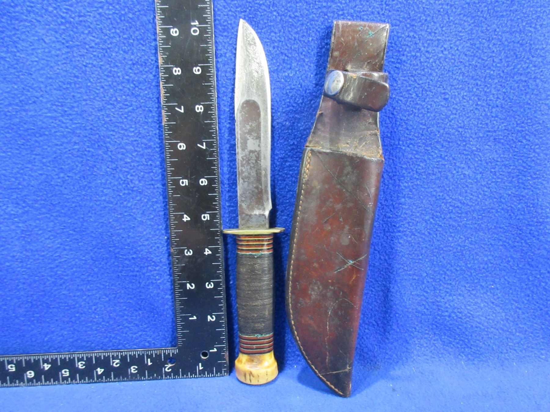 Vintage Marble's Fixed Blade Knife with Leather Sheath - 5 1/2" Blade, 10" Total Length