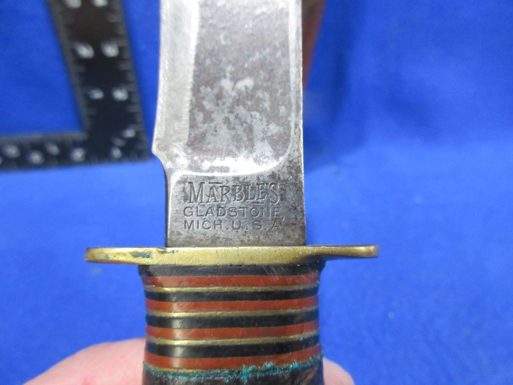 Lot 1128 Vintage Marble's Fixed Blade Knife with Leather Sheath