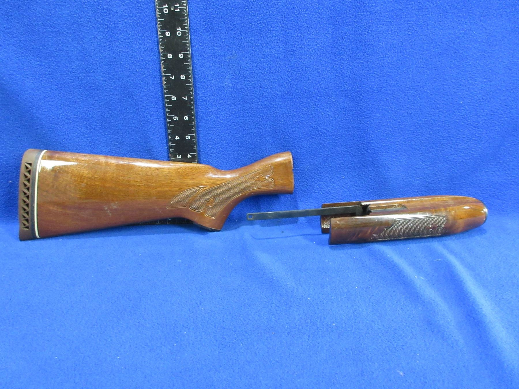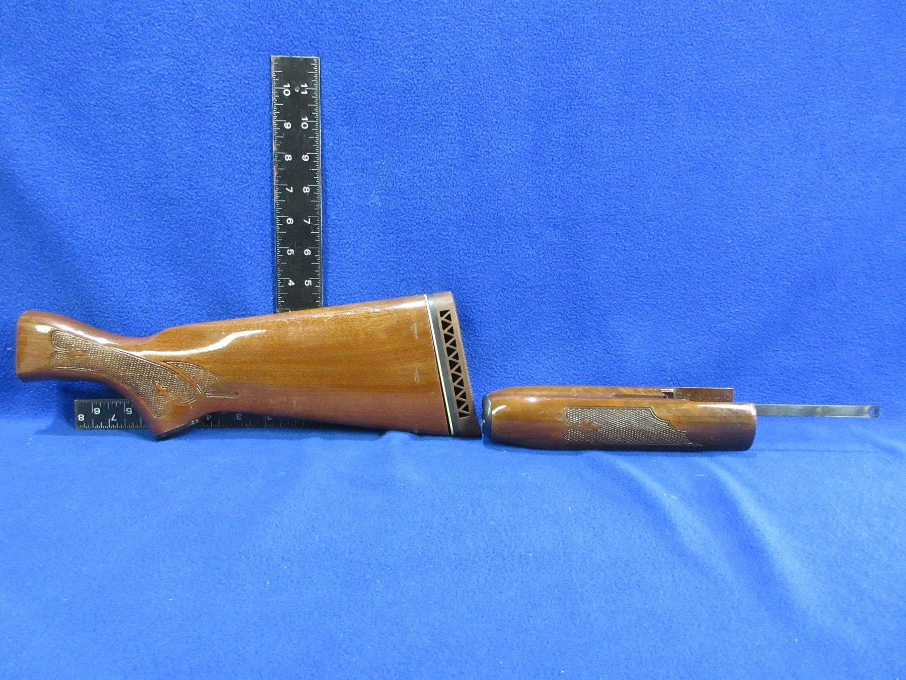 Wood Stock & Forearm Only - Appears to be Remington 870 (Consignor Listed as Remington Deluxe) - Good to very good condition with usage marks. Comes with rubber recoil pad and wrist cap