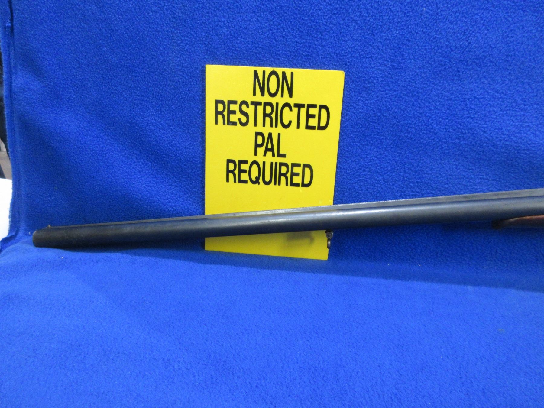 Non-Restricted - Baikal Model IJ-58M in 16 Ga. 2 3/4" - This is a tip up SXS shotgun, action is tight and appears to be in working order but rear trigger will not fire. Barrels are 28 1/2", bores are good but left barrel has a dent approx 14" from muzzle, bluing is good with some light pitting, has bead front sight, stock is good with usage marks, forearm is good with usage marks, length of pull is 14 3/4", butt plate good, comes with swivels. Ser # K44552
