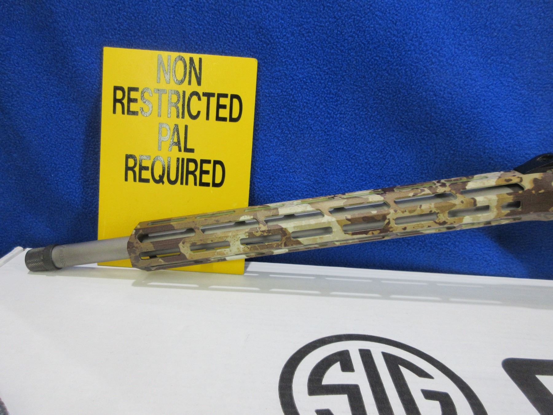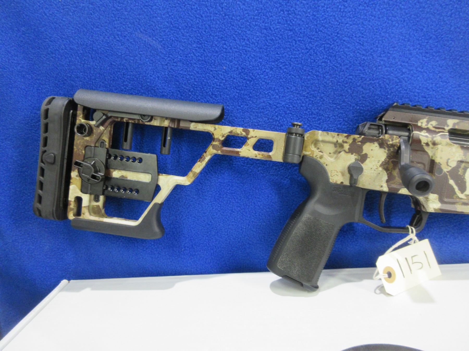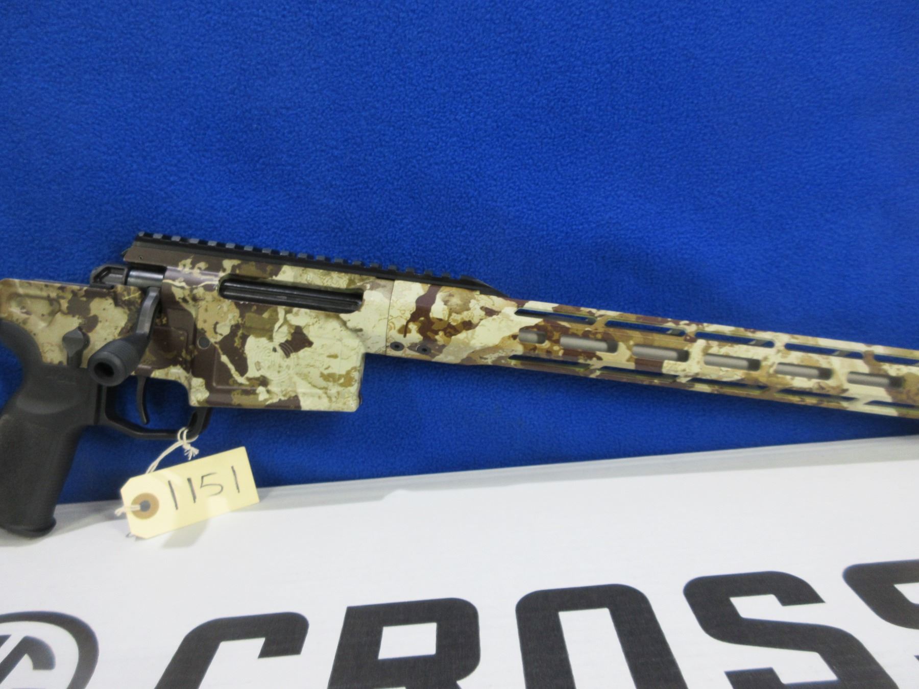Non-Restricted - Sig Sauer Model Cross in 6.5 Creedmoor - This is a bolt action rifle with 2 removable magazines, action appears to be in very good working order. Barrel is 18.5", rifling is good to very good, First Lite Cipher Armakote finish good to very good, has no sights but has picatinny rail, adjustable folding SIG Precision stock is good to very good, length of pull is 12 3/4" - 14 3/4"", M-LOK accessory rail, rubber recoil pad good, comes with 2 magazines (P-Mag 5 & P-Mag 10), cable lock and original box. Ser # 70G016433