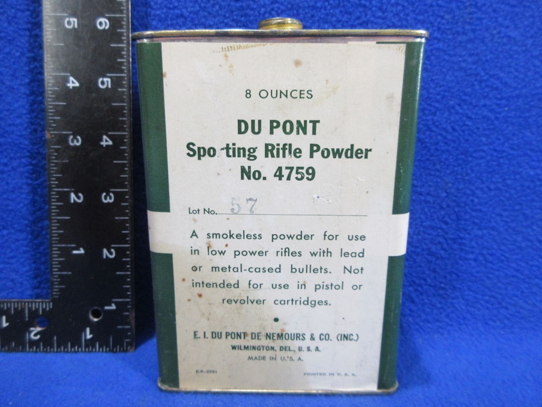 Lot 1152 DuPont Sporting Rifle Powder Number 4759 Empty Collector Tin