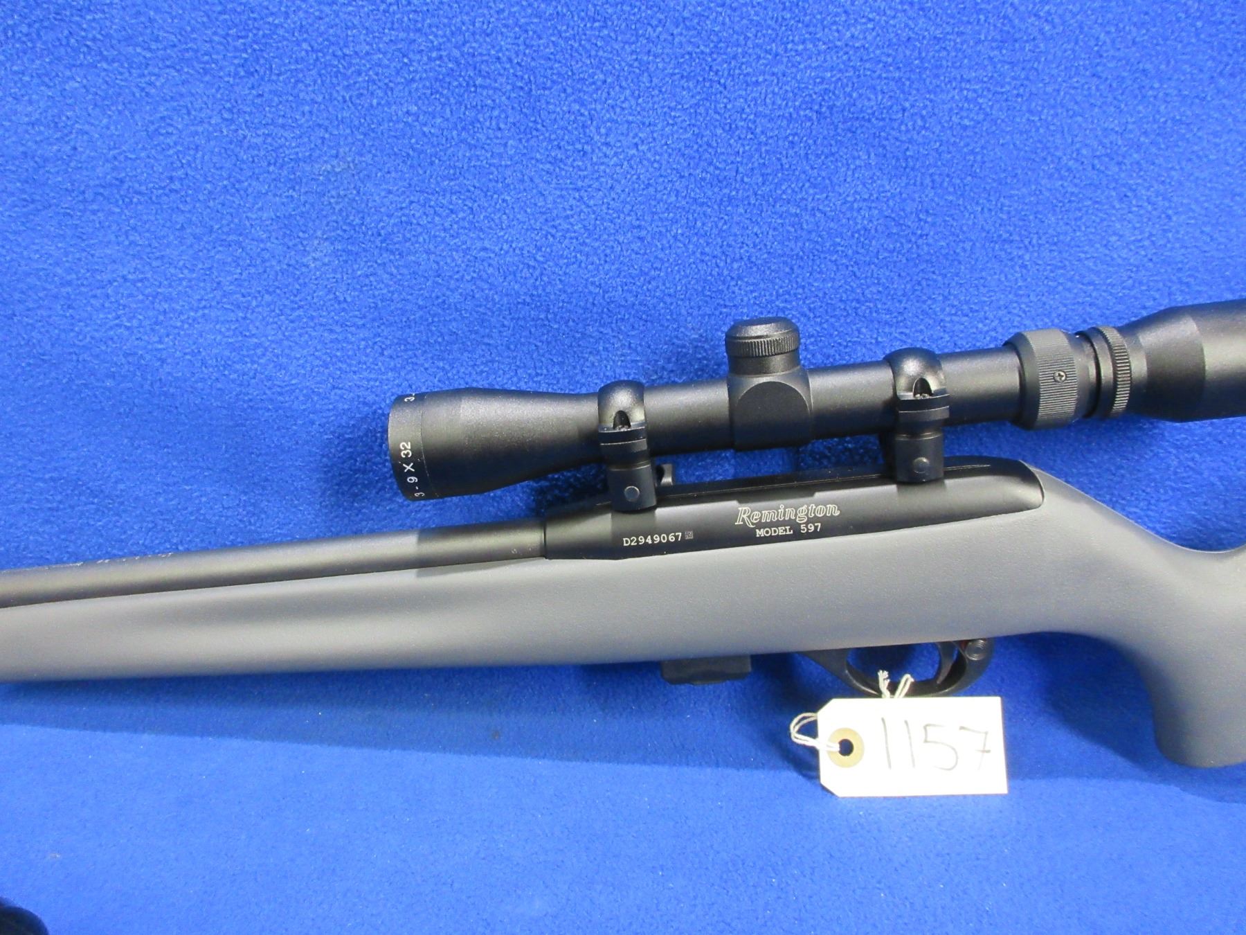 Non-Restricted - Remington Model 597 in 22 LR - This is a semi-auto rifle with removable magazine, action appears to be in good to very good working order. Barrel is 20", rifling is good to very good, bluing is good to very good, has no sights but has Remington 3-9x32 scope - appears clear - duplex reticle, synthetic stock is good to very good, length of pull is 1", butt plate good, comes with lens covers and owner's manual. Ser # D2949067