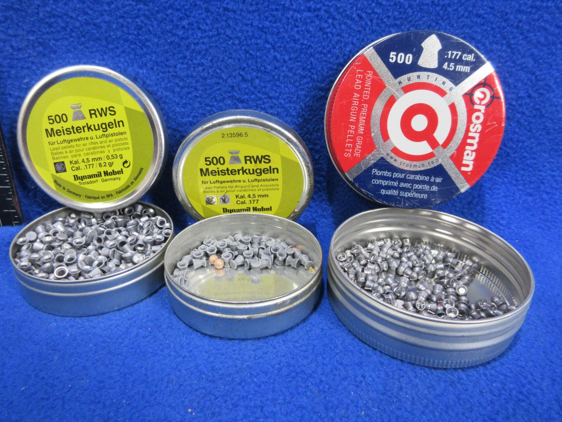 .177 Cal. Crosman and Dynamit Nobel Pellets - Tin of 500, Tin of Approx. 30 (Dynamit Nobel), Tin of Approx. 100 (Crosman)