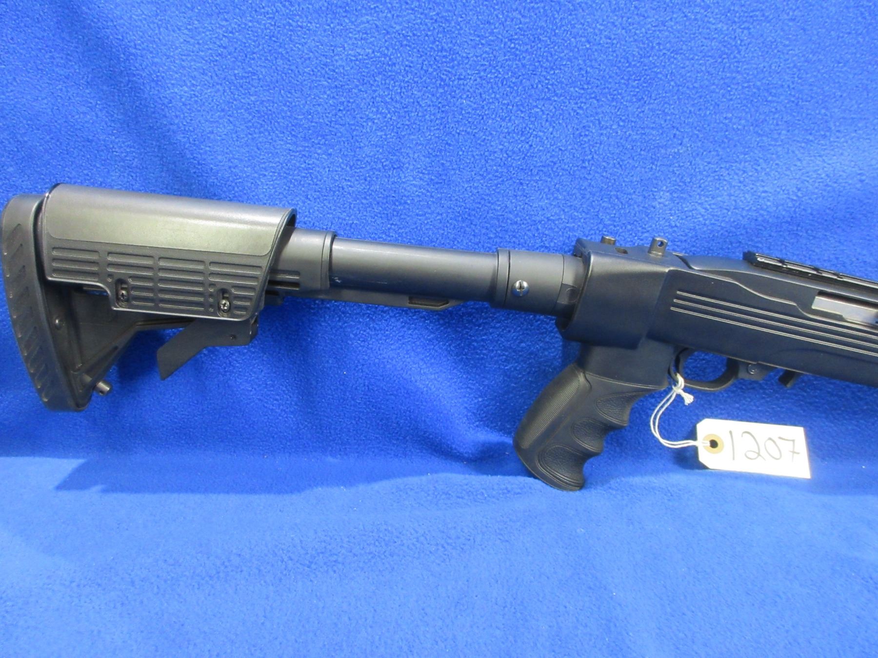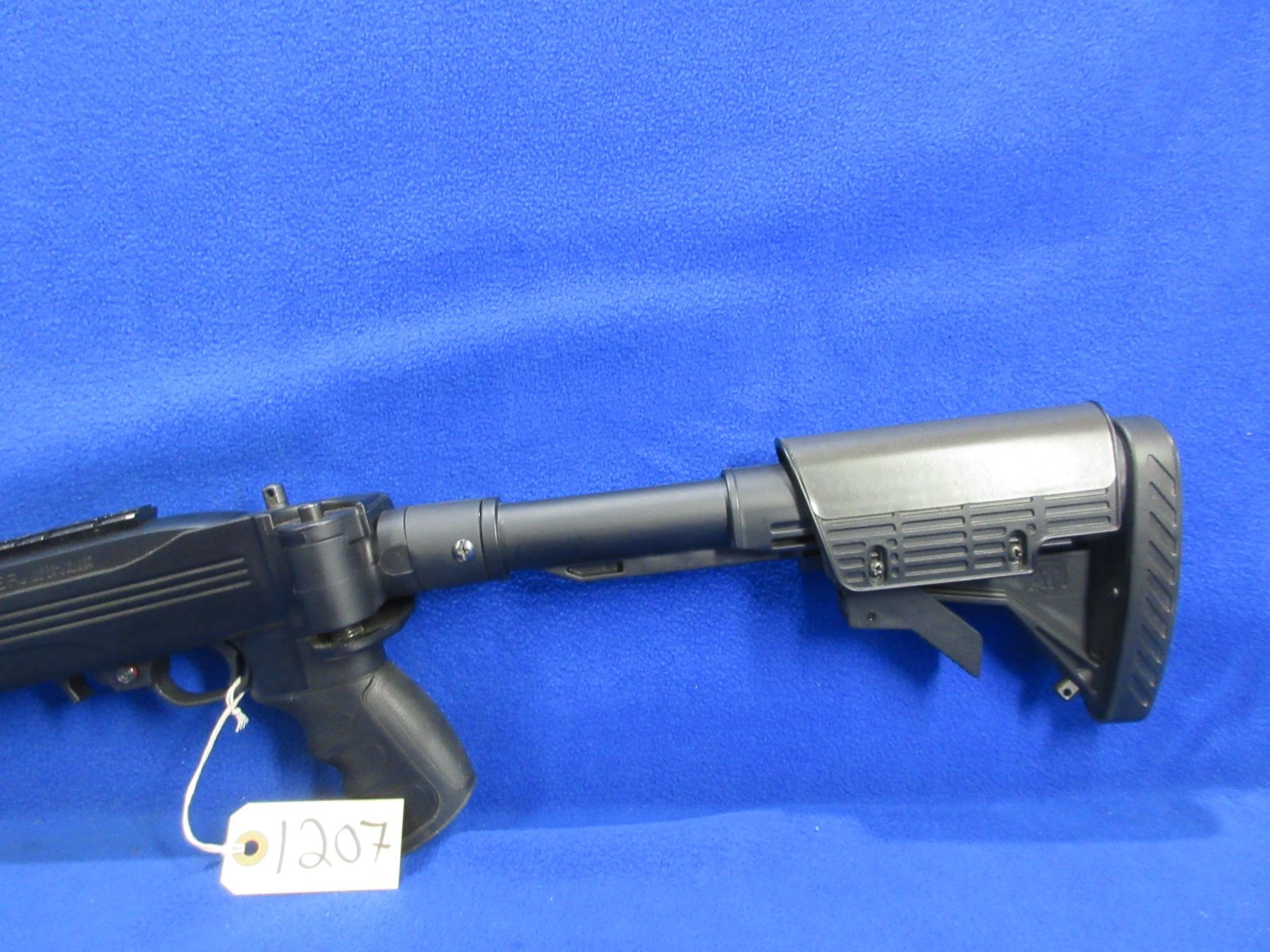 Non-Restricted - Ruger Model 10/22 in 22 LR - This is a semi-auto rifle with removable magazine, action appears to be in very good working order. Barrel is 18.5", rifling is very good, bluing is very good, has both sights and a Weaver style base, adjustable folding ATI stock is good to very good, length of pull is 12 1/4"-16"", rubber recoil pad good, comes with swivels. Ser # 823-79489