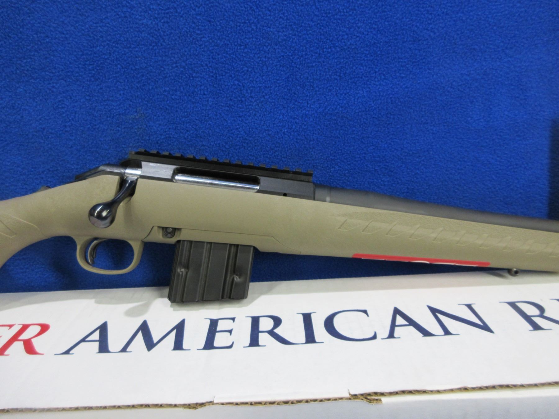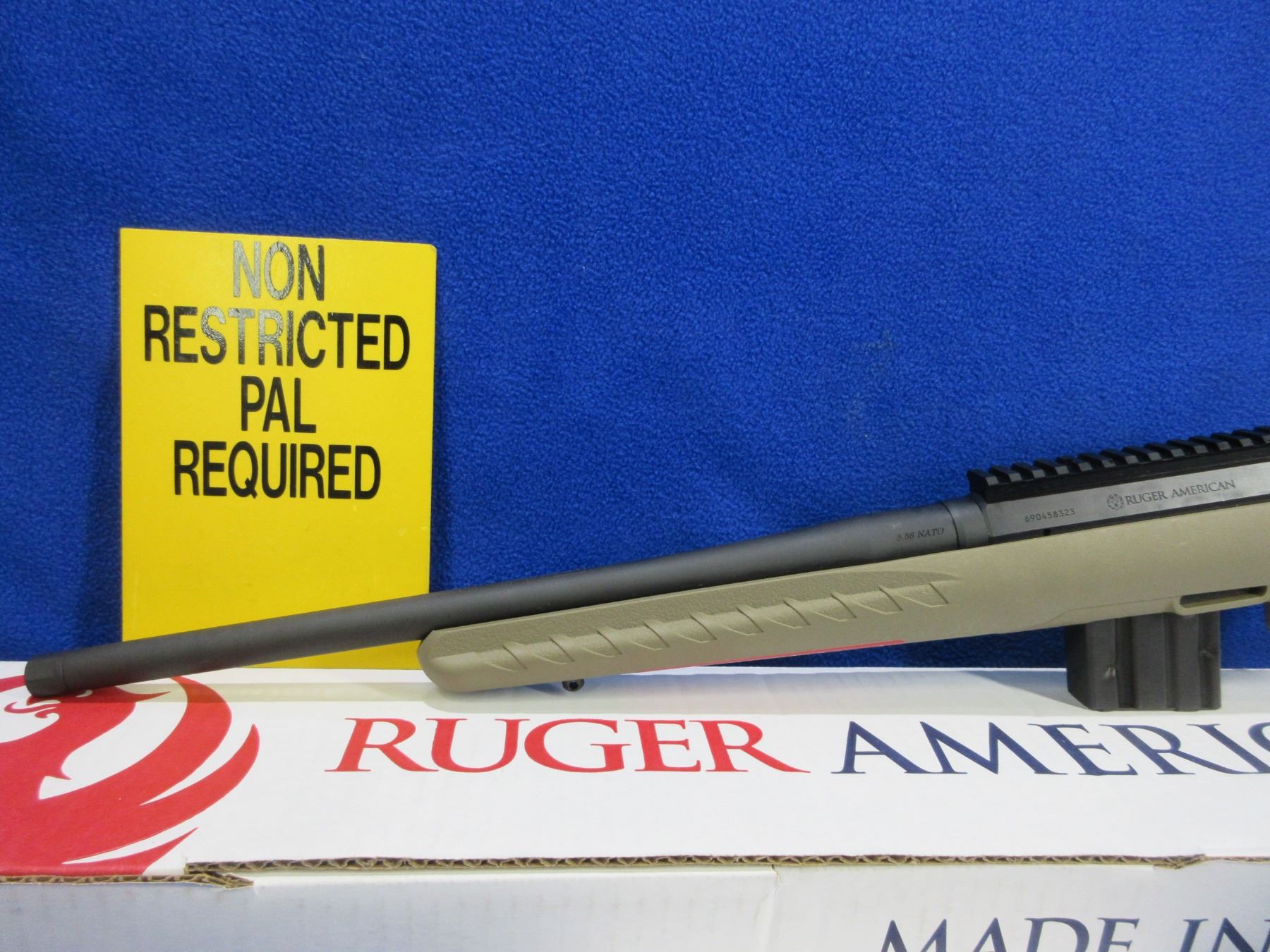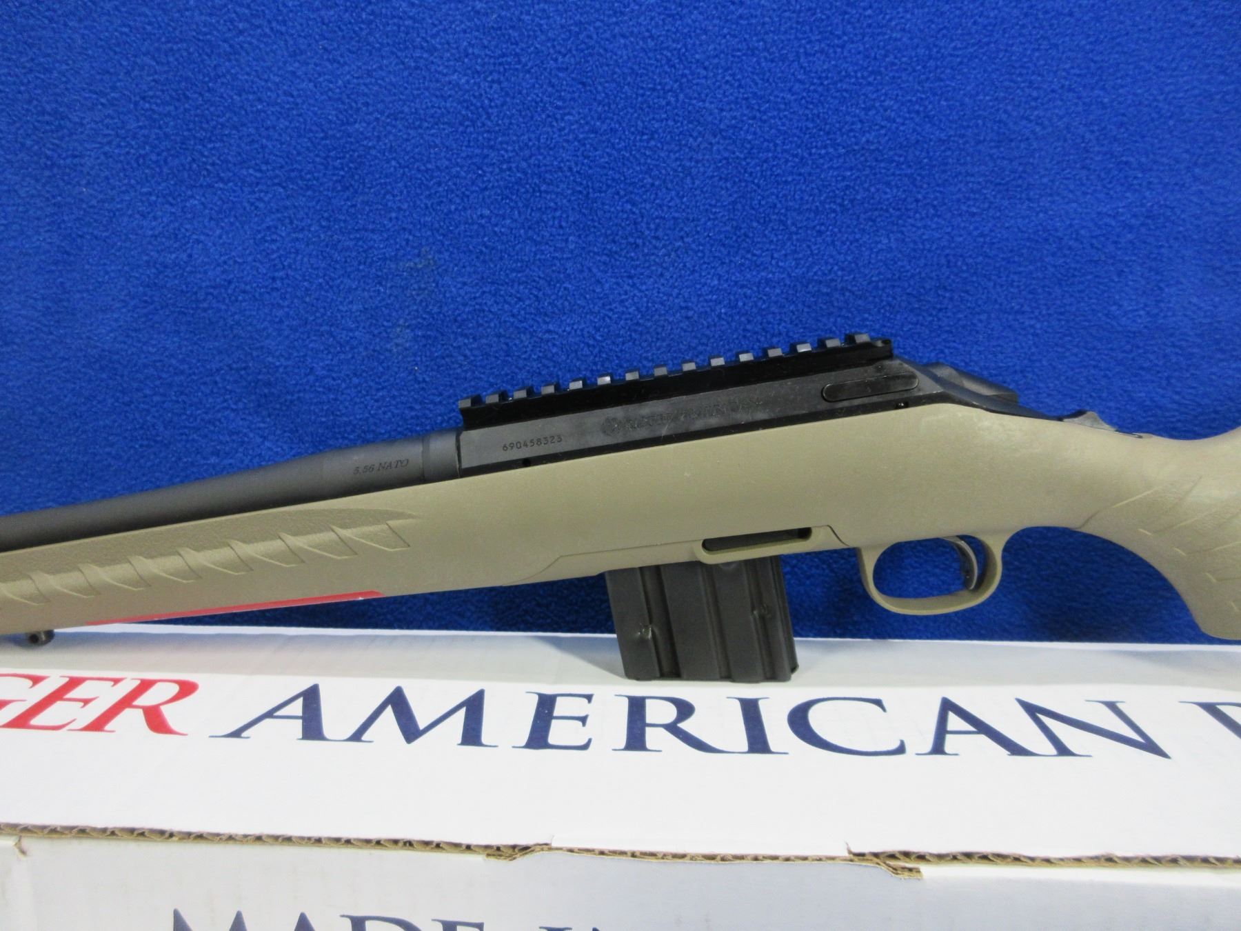 NEW - Non-Restricted - Ruger American Ranch in 5.56 NATO - This is a NEW, never fired bolt action rifle with removable AR style magazine and Ruger Marksman Adjustable™ trigger. Factory-installed, one-piece Picatinny scope base. Cold hammer-forged threaded 16.1" barrel with factory-installed thread protector, length of pull is 14", comes with original box and paperwork. Ser # 690458323