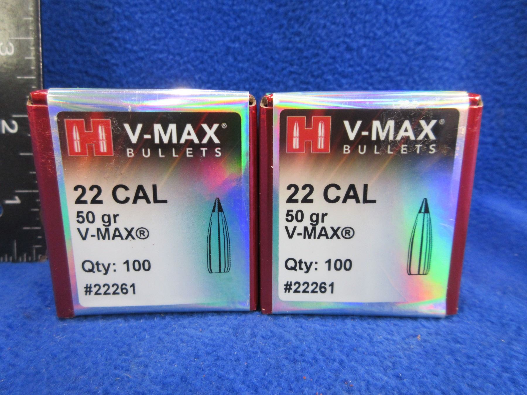 22 Cal. 50gr V-Max Hornady Bullets - 2 Sealed Boxes of 100