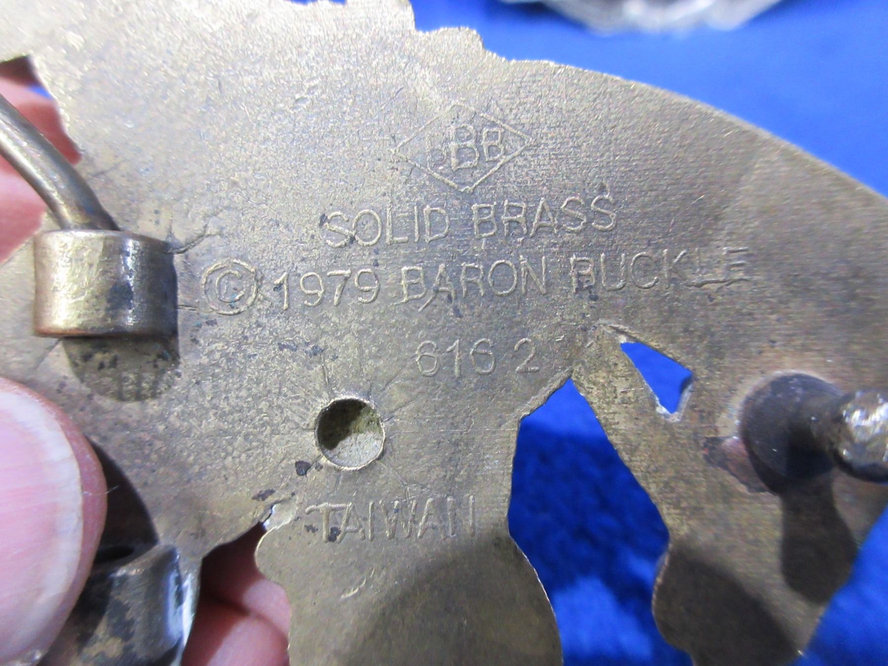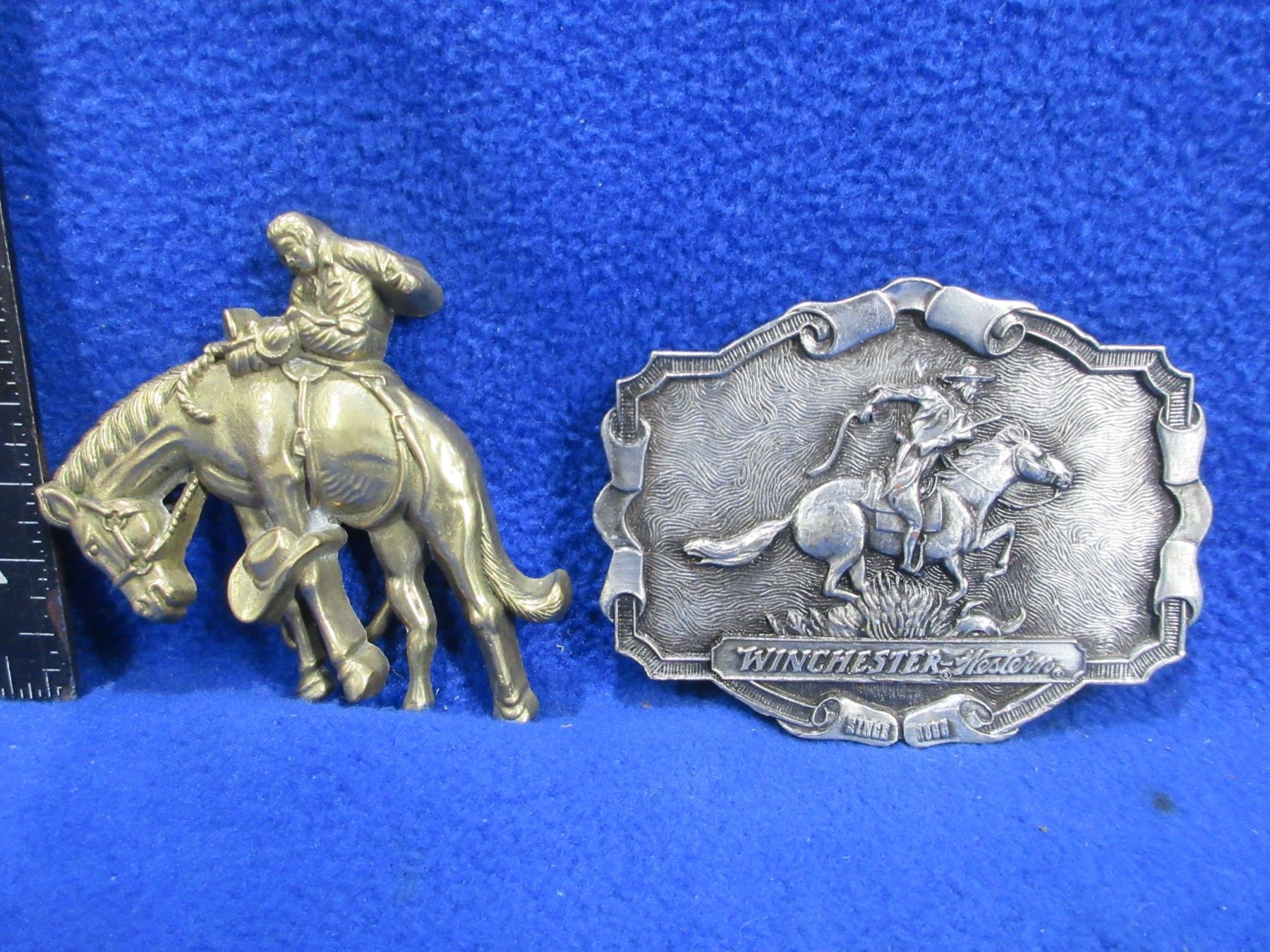 Lot 1289 2 Belt Buckles - Winchester Western & Solid Brass 1979 Baron Buckle
