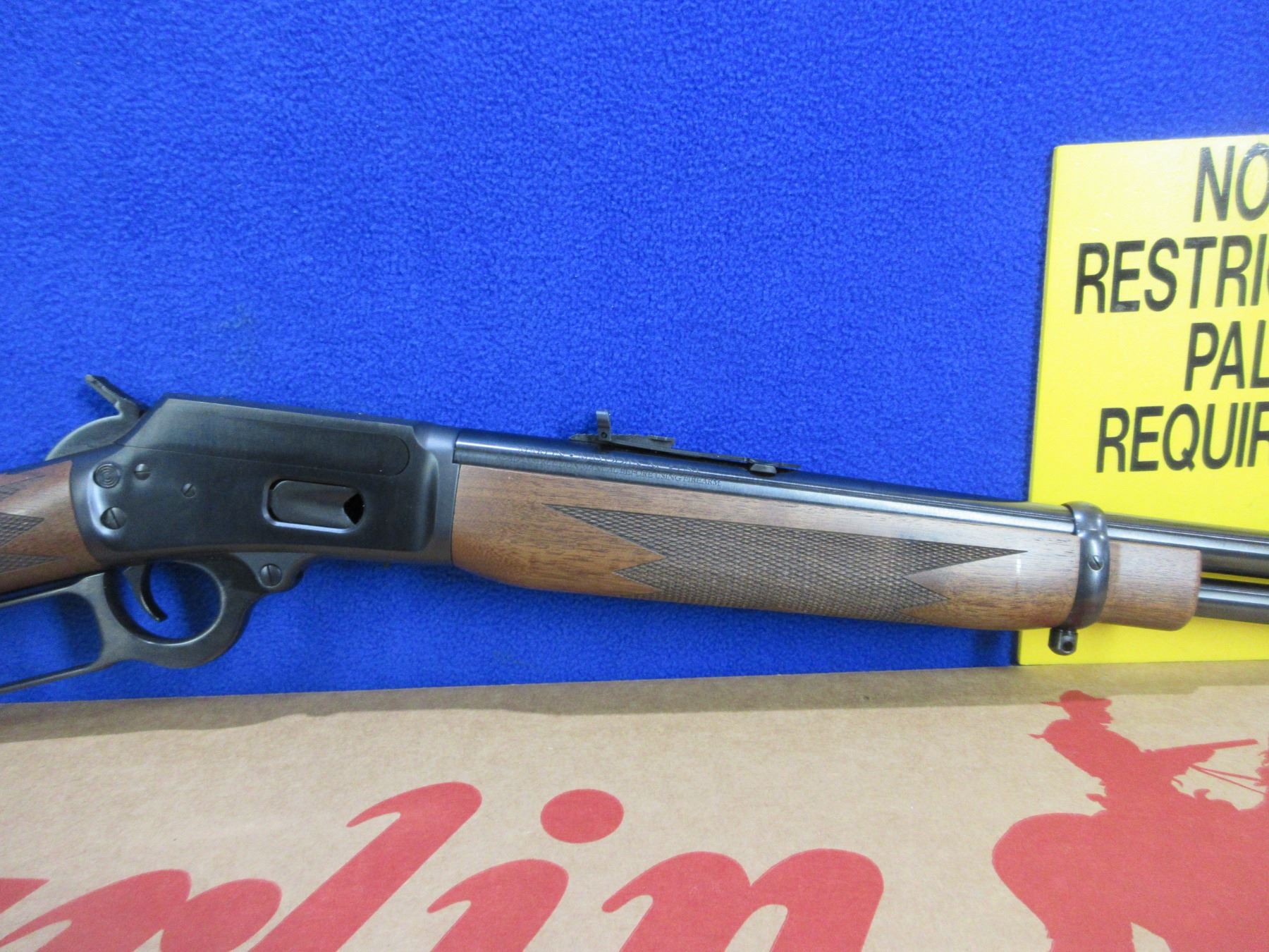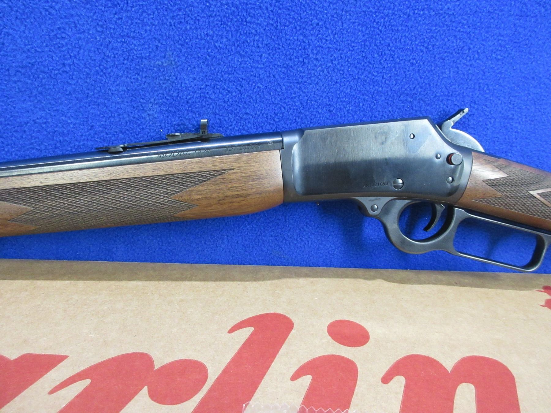 NEW - Non-Restricted - Marlin Model 1894 in 357 Mag. - This is a NEW lever action rifle with tube magazine . Barrel is 18.6", satin blued finish, beautifully finished American black walnut stock has 3 small handling marks (dents), brass bead front sight with hood and