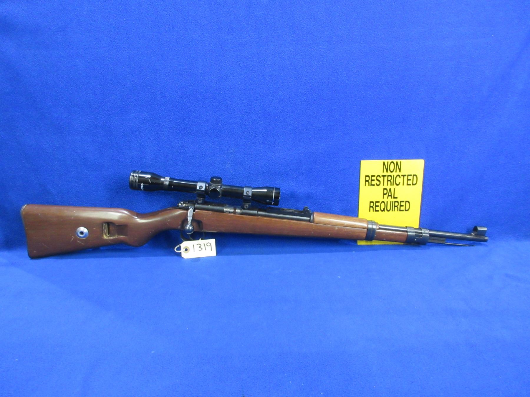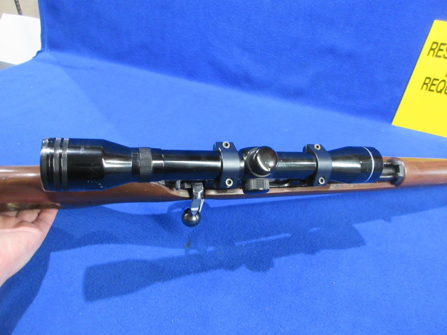 Non-Restricted - Norinco JW-25A Mini Mauser in 22 LR - This is a bolt action rifle with removable magazine, action appears to be in good working order. Barrel is 20 3/4", rifling is good to very good, bluing is good, has front sight, rear sight missing but has Tasco 4x32 scope - appears clear - duplex reticle, stock and handguard are good with usage marks, length of pull is 13", metal butt plate good, comes with cleaning rod. Ser # 9500380