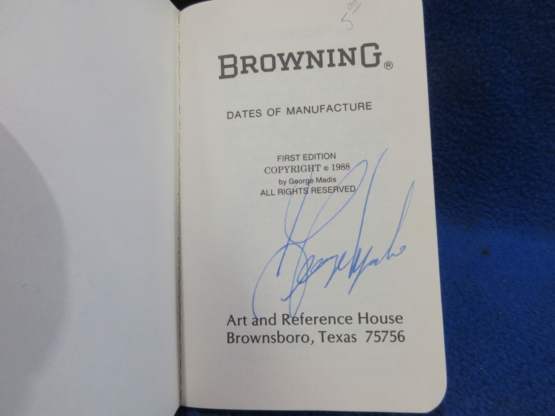 1 Book - Browning Dates of Manufacture - 1824 to Present, Copyright 1988, Signed by Author