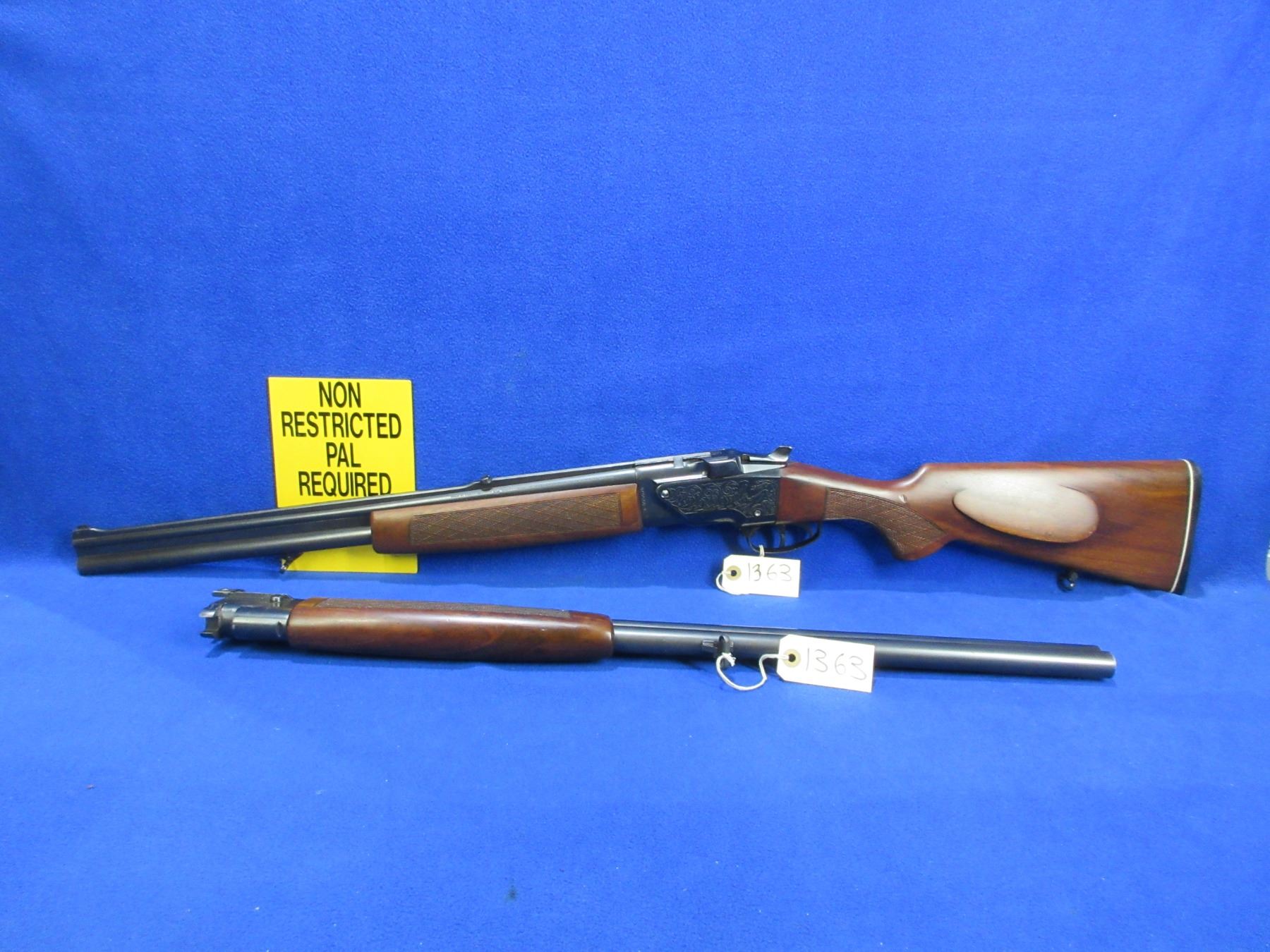 Non-Restricted - BRNO ZH305 Combo in 12 Ga. 2 3/4"/5.6x52R (22 Savage HP) - This is a tip up combo shotgun/rifle, action appears to be in good to very good working order. 12 Ga. vent rib barrels are 27 1/2", bores are good to very good, bluing is good, has front bead sight, forearm is good to very good with usage marks - model ZH301- serial # 3-111659. Shotgun/rifle barrels are 23 1/2" - bore is good, rifling is good, bluing is good, has both sights, forearm is good to very good - model ZH305 - serial #3-905078. Action bluing is good, stock is good to very good with usage marks, length of pull is 14 3/4", butt plate good, comes with swivels. Ser # 346415