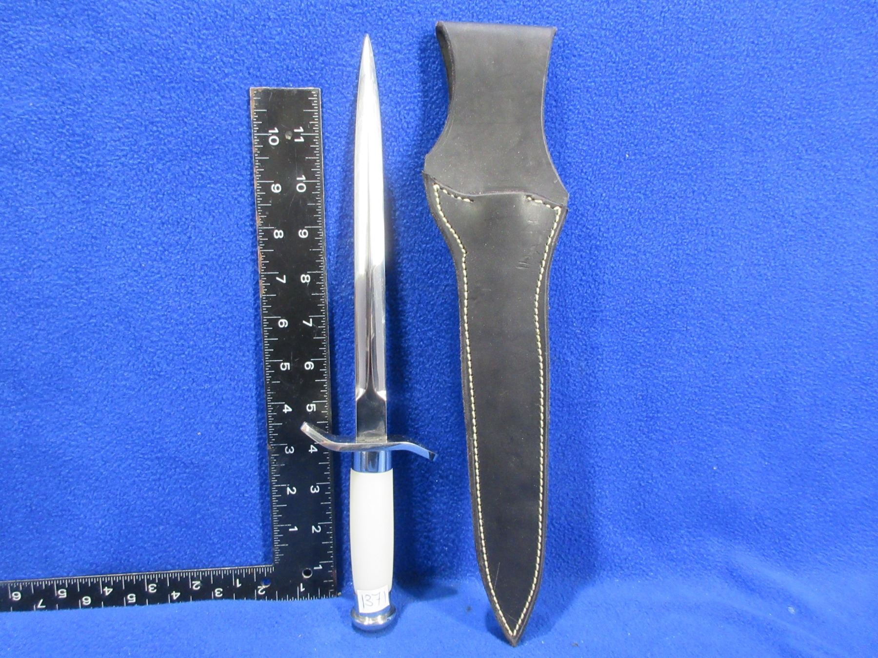 Lot 1371 Unmarked Dagger with Leather Sheath - 8" Blade, 13" Total Length