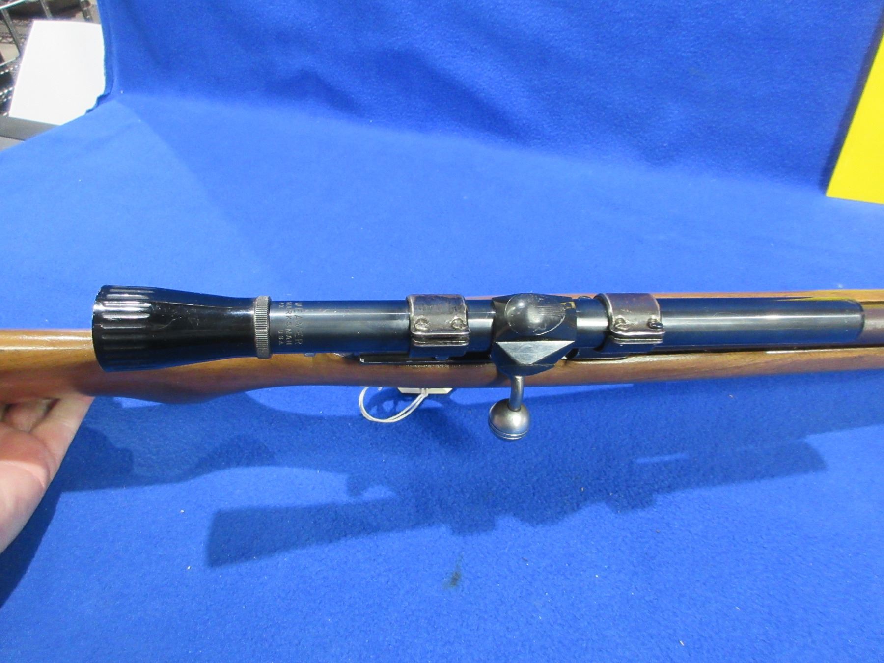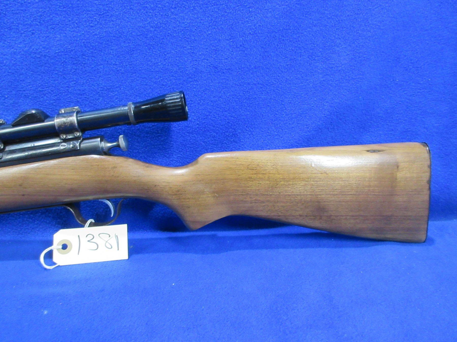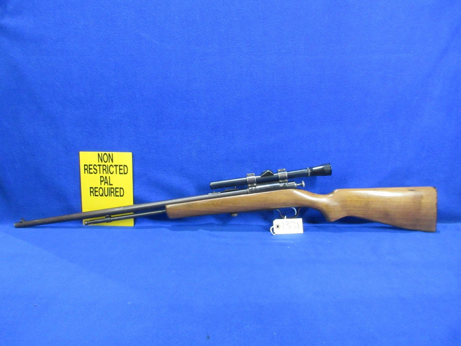 Non-Restricted - Cooey Model 60 in 22 S/L/LR - This is a bolt action rifle with tube magazine, action appears to be in good to very good working order. Barrel is 24", rifling is good to very good, bluing is turning brown, has both sights and Weaver Marksman 4x scope - appears cloudy - standard crosshair - obj lens appears chipped or cracked, stock is good to very good, length of pull is 13", metal butt plate pitted butt has been painted. Ser # None
