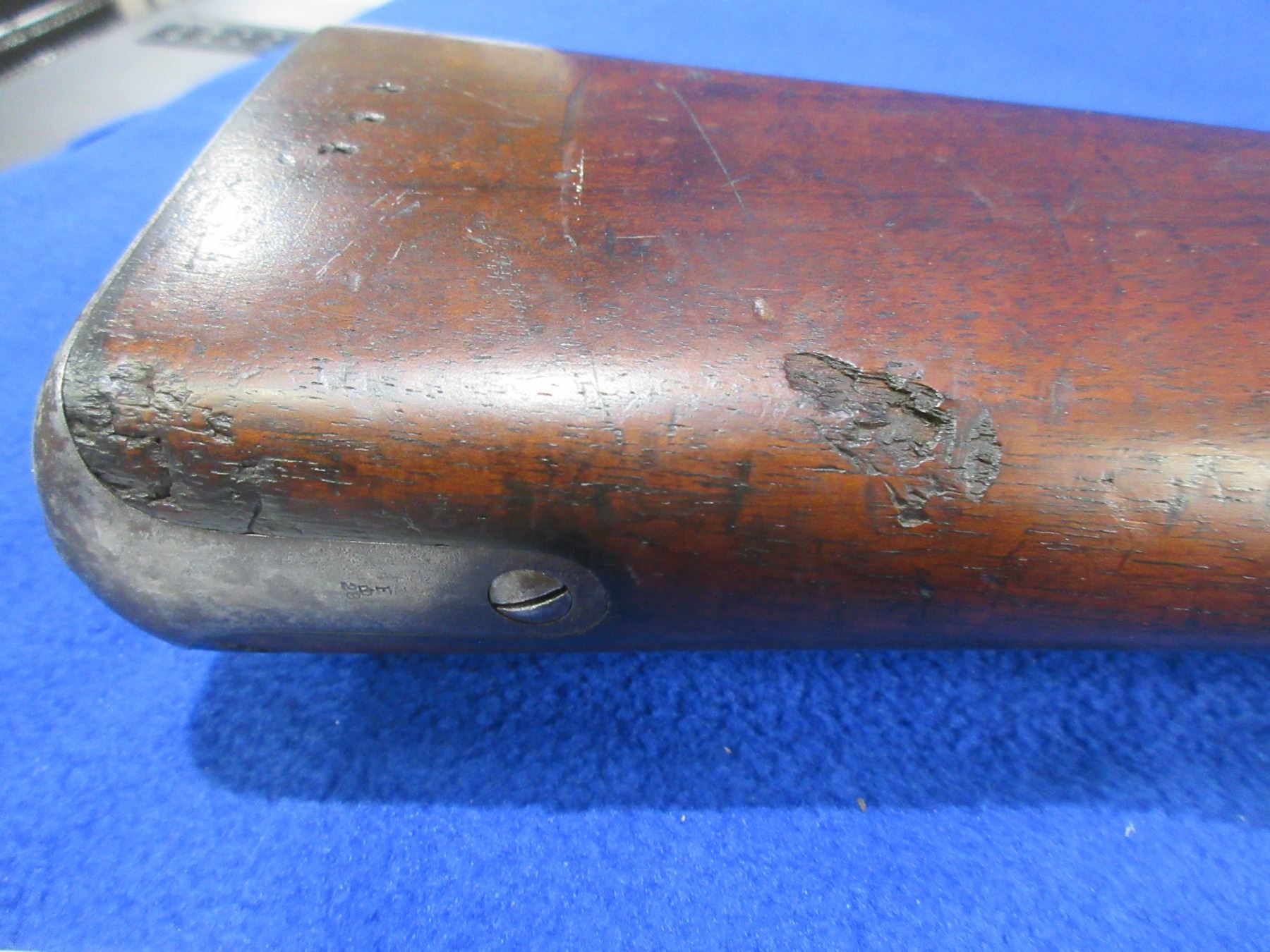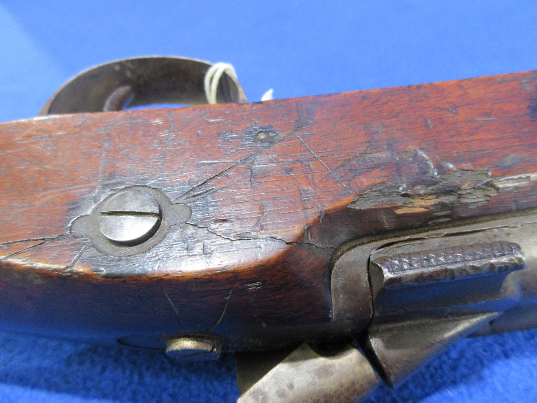 Antique - No PAL Required - Snider Enfield 1862 in .577 Snider - This is a breech load single shot 2 band Sergeants rifle, action is tight but is in non working order as firing pin is missing. Barrel is 30 1/2", rifling is good for age, bluing is turning brown or gone, has blade front sight, stock has cracks on both sides of the toe and a crack on the left side of the action, length of pull is 13 1/2", metal butt plate good. Ser # None