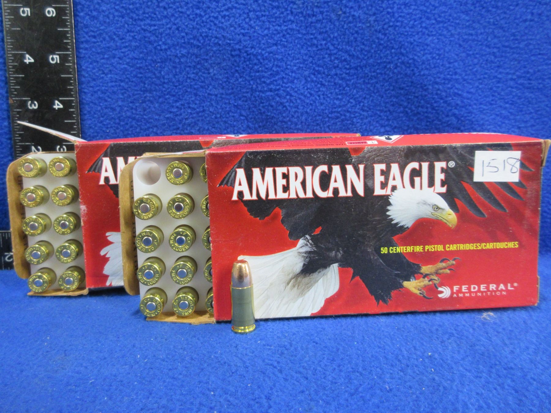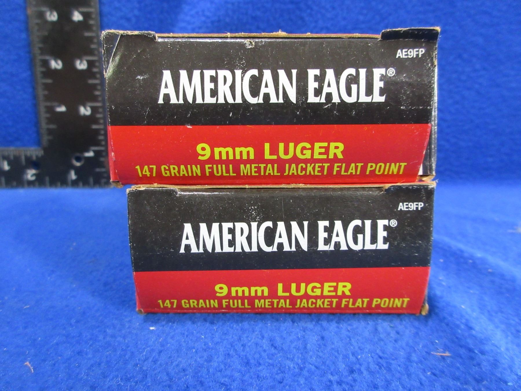 9MM Luger 147gr FMJ FP Federal (Pick Up or Ship by UPS Only) American Eagle Cartridges - 2 Boxes of 50